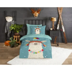 Droomtextiel Dekbedovertrek Kinderen Palm Lama Blauw