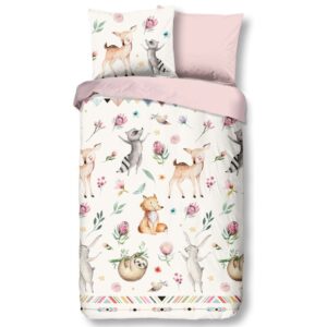 • Good Morning Dekbedovertrek Kinderen Dieren, Vosje, hertje, konijntje 140x200/220cm - 100% Zacht Katoen