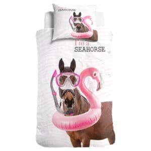 Sale -25%Little Monster Kinderdekbedovertrek - I'm a Seahorse Wit- 140x200/220 cm