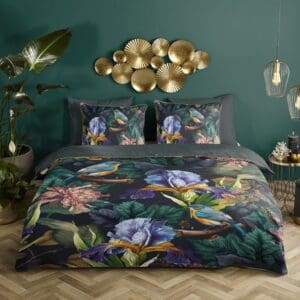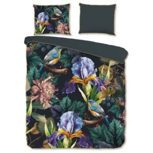 Sale -10%Descanso Dekbedovertrek bloemen en vogels Antraciet - 200x200/220 cm - Katoen Satijn