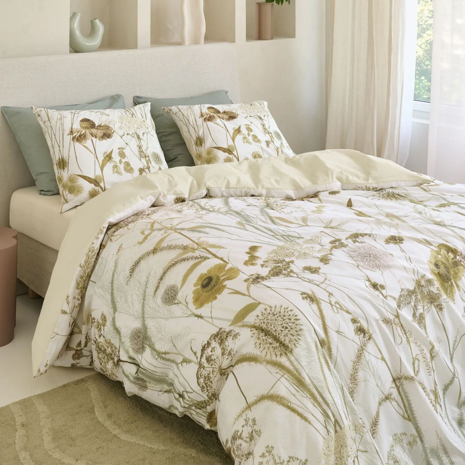 Haal de natuur in huis met het Beddinghouse Cely dekbedovertrek. Het dessin met sierlijke veldbloemen en wilde grassen zorgt voor een levendige, maar rustige uitstraling. De zachte, natuurlijke tinten brengen direct een ontspannen voorjaarssfeer in de slaapkamer. Dankzij de effen achterzijde creëer je eenvoudig een rustige omslag voor een subtiele en landelijke look.