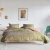 Met dekbedovertrek Glossy van Beddinghouse Dutch Design maak je een statement in je slaapkamer. Het ontwerp speelt met zachte kleurverlopen en verfijnde motiefjes die een subtiele dans van licht en beweging creëren. In combinatie met het serene kleurenpalet van groen, roze, zand en koraal oogt het overtrek eigentijds en sfeervol. De effen groene achterkant benadrukt de eenvoud en verfijning van het ontwerp.