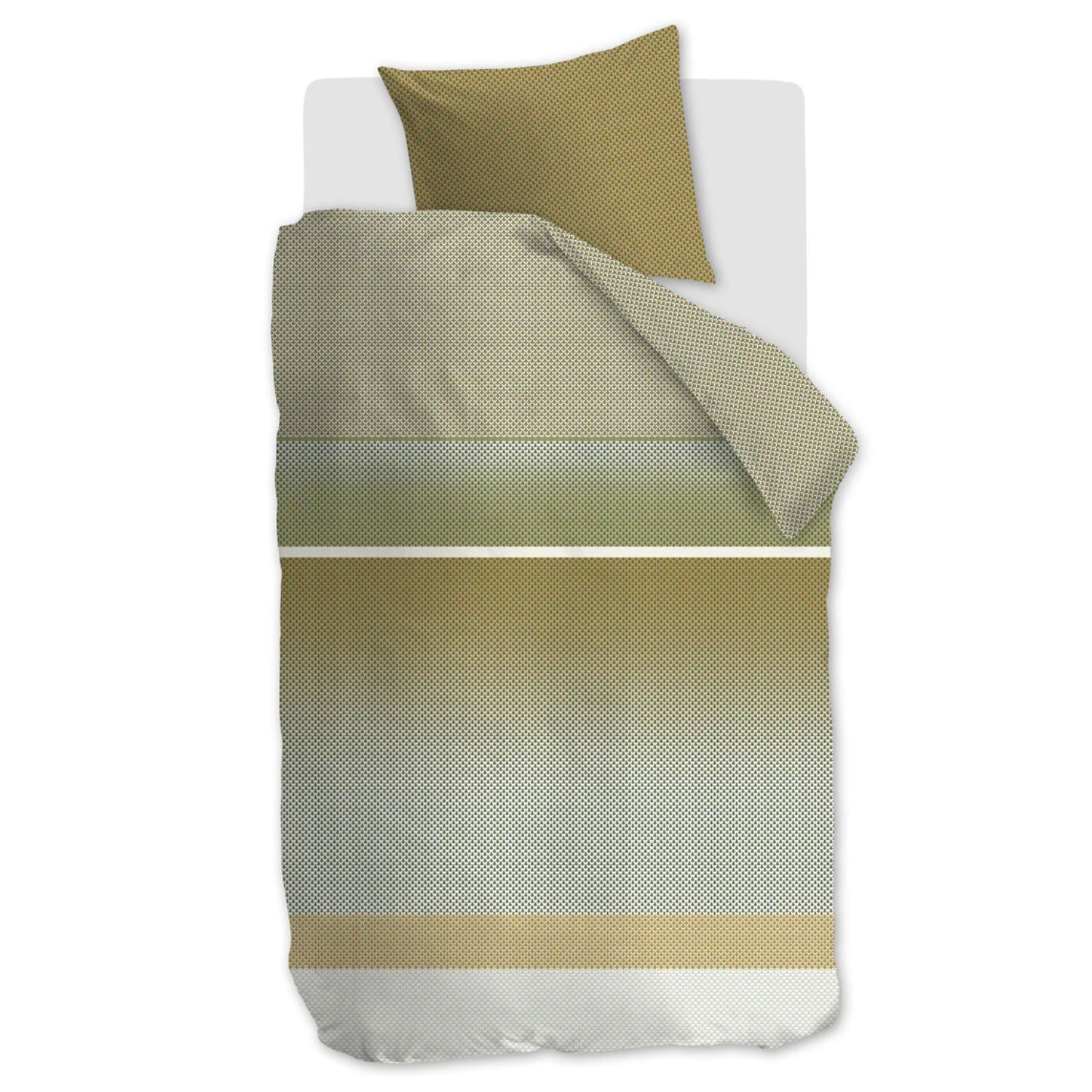 Het Beddinghouse Elvi dekbedovertrek in groen geeft je slaapkamer een moderne en rustige uitstraling dankzij de geometrische print met subtiele kleurovergangen. Gemaakt van 100% katoen-satijn voelt het heerlijk zacht aan en zorgt het voor een fris en comfortabel slaapklimaat. De extra lange, dubbel doorlopende instopstrook en wasbaarheid tot 60°C maken dit overtrek bovendien praktisch én luxe.