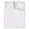 De onderzijde is voorzien van een dubbel doorlopende instopstrook over de gehele breedte met een totale lengte van circa 250 cm. Hierdoor blijft het dekbed netjes op zijn plaats en is het overtrek geschikt voor dekbedden van 200, 210 en 220 cm. Het dekbedovertrek is wasbaar tot 40°C, geschikt voor de droger en hoeft niet gestreken te worden. Daarnaast is het duurzaam verpakt in een herbruikbaar stoffen tasje van hetzelfde materiaal. Met dit product steun je de missie van Better Cotton via het mass balance systeem.