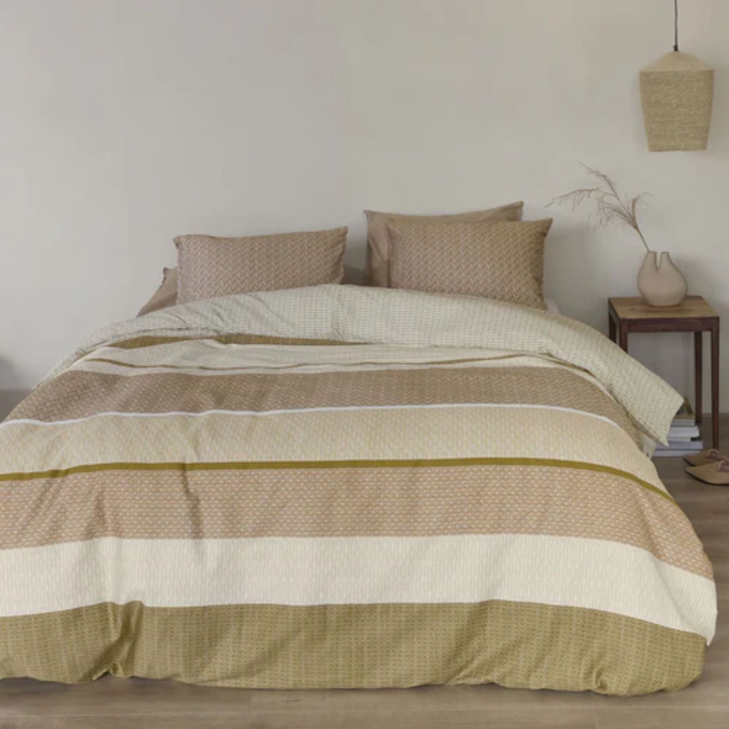 Geef jouw slaapkamer een warme en sfeervolle uitstraling met het Beddinghouse Hilde dekbedovertrek in naturel. Het moderne banenpatroon in combinatie met subtiele grafische details zorgt voor een trendy en stijlvol geheel. Het natuurlijke kleurpalet straalt rust uit en helpt je om na een drukke dag heerlijk ontspannen in slaap te vallen. Dankzij de dubbelzijdige print creëer je eenvoudig een luxe omslag voor een verzorgde look op bed.