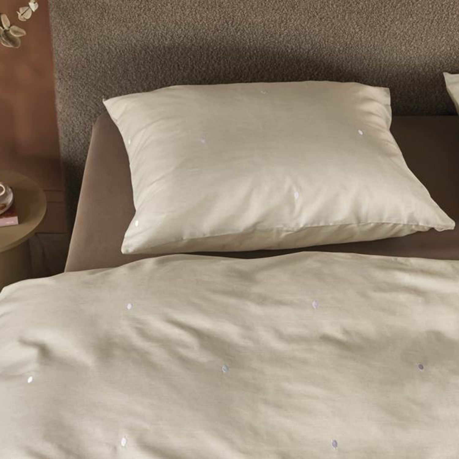 Creëer een warme en sfeervolle slaapkamer met het Beddinghouse Monsoon dekbedovertrek. De lichte zandtint straalt rust en gezelligheid uit en helpt je iedere avond ontspannen. Het subtiele uni dessin wordt verrijkt door geborduurde stipjes, die zorgen voor een luxe uitstraling en het overtrek net dat beetje extra geven. Dankzij het minimalistische design past dit dekbedovertrek perfect in een Scandinavische of moderne slaapkamer.