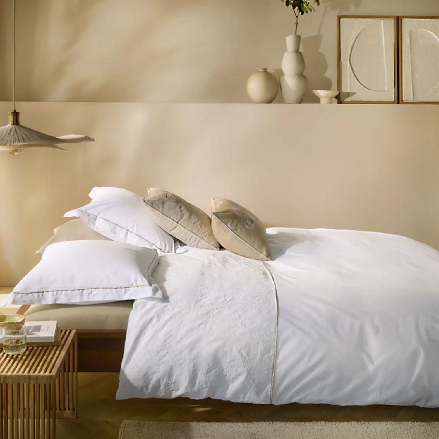 Het dekbedovertrek Broderie Fleuri is onderdeel van de officiële samenwerking tussen Beddinghouse en het Van Gogh Museum Amsterdam. Het verfijnde bloemendessin is geïnspireerd op Van Goghs wereldberoemde schilderij Amandelbloesem en straalt pure elegantie en rust uit. De subtiele, geborduurde bloemen komen prachtig tot leven op de witte ondergrond en geven het overtrek een luxe en tijdloze uitstraling. Dankzij de effen achterzijde kies je zelf voor een rustige of juist meer gedetailleerde look in de slaapkamer.