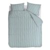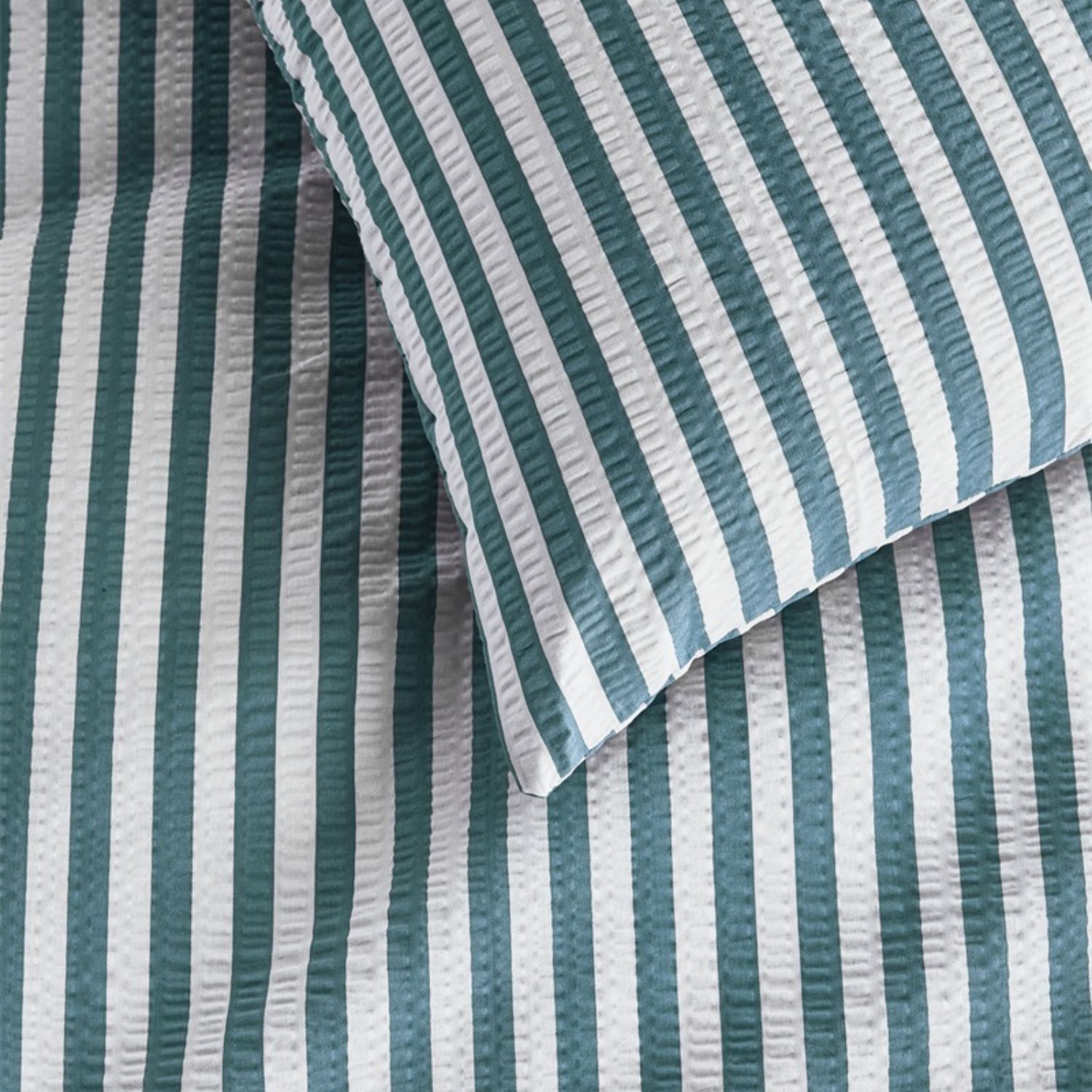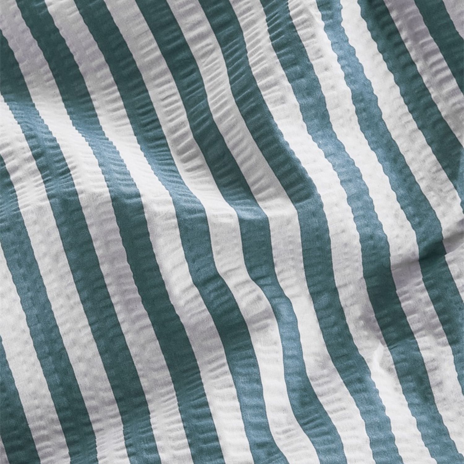 Dekbedovertrek Veya valt op door verticale strepen met een licht geribbelde structuur, wat zorgt voor een speels en levendig effect. De frisse, natuurlijke tinten versterken het gevoel van hoogte en ruimte in de slaapkamer. De subtiele kreuk in de stof geeft het geheel een ontspannen en eigentijdse uitstraling die perfect past binnen een moderne woonstijl.