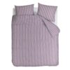 Dekbedovertrek Veya valt op door verticale strepen met een licht geribbelde structuur, wat zorgt voor een speels en levendig effect. De frisse, paarse versterken het gevoel van hoogte en ruimte in de slaapkamer. De subtiele kreuk in de stof geeft het geheel een ontspannen en eigentijdse uitstraling die perfect past binnen een moderne woonstijl.