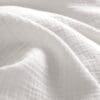 Mousseline, ook wel double gauze genoemd, is een unieke stof die bestaat uit twee fijne lagen los geweven katoen. Deze zijn op enkele punten subtiel met elkaar verbonden, waardoor een karakteristieke, natuurlijke kreukstructuur ontstaat – het bekende crinkle-effect.