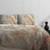 Het overtrek is digitaal gedrukt en reactief gewassen, wat betekent dat de kleuren diep in de stof zijn opgenomen. Zo blijft het dessin langdurig mooi en kleurecht, zelfs na meerdere wasbeurten. De hoogwaardige katoensatijnen kwaliteit behoudt zijn luxe uitstraling en zachte gevoel.