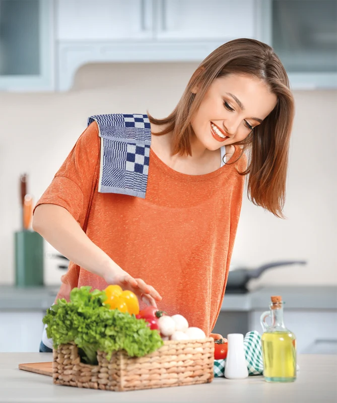 Elke theedoek en keukendoek van Droomtextiel is ontworpen met een slim lusje, zodat je ze gemakkelijk kunt ophangen. De afmetingen van theedoek 65×65 cm en keukendoek 50×50 cm passen perfect in jouw keuken, of je nu een compacte studentenkamer hebt of een ruime kookstudio. Dankzij de geblokte patronen (Blauw-Wit, Rood-Wit, Groen-Wit en Zwart-Wit) heb je direct een stijlvolle aanblik die past bij elk interieur.