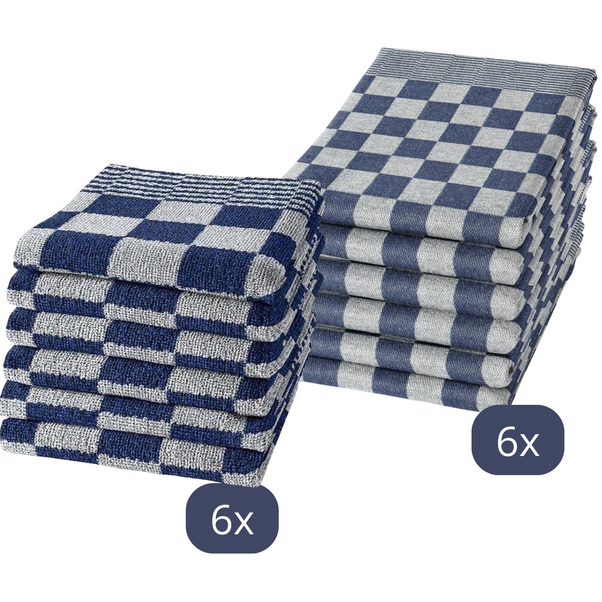 De theedoek (65×65 cm, 245 g/m²) is ideaal voor grote oppervlakken en delicate glazen. De keukendoek (50×50 cm, 450 g/m²) met badstof is extra absorberend en perfect voor hardnekkig vocht.