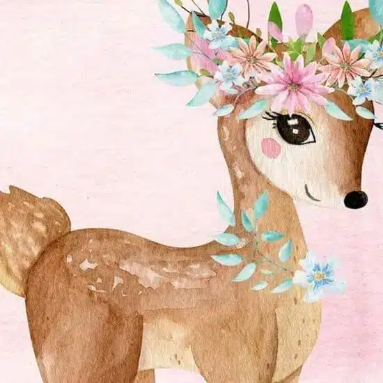 | Design | Uniek hert met bloemenkrans, pastelroze & blauw | Algemene prints, beperkt variatie |