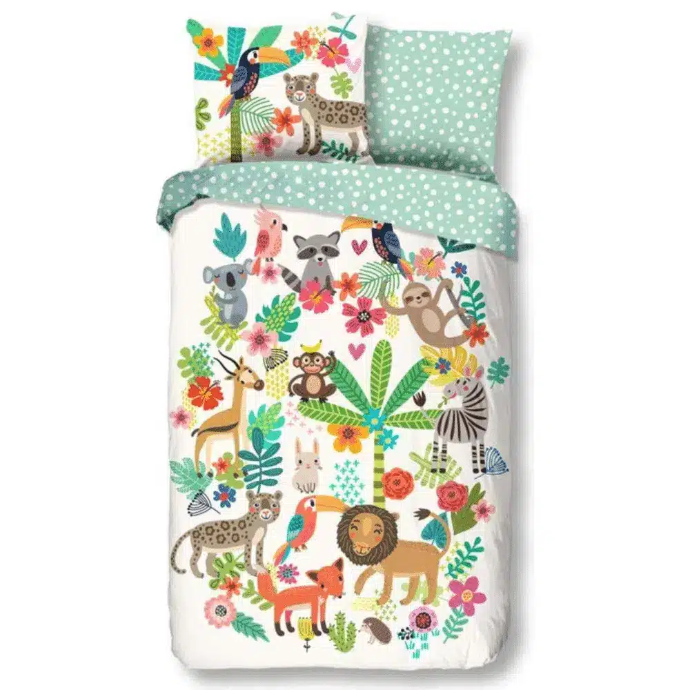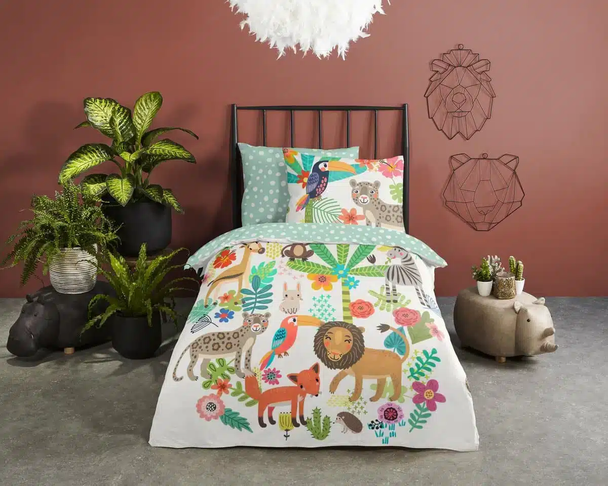 Ken je dat gevoel dat de kinderkamer maar niet tot leven komt? Je wilt je kleintje graag een vrolijke, frisse en stimulerende slaapomgeving bieden, maar het budget en de kwaliteit mogen niet lijden onder deze wens. Met het Happy dekbedovertrek 140×200/220 van Droomtextiel transformeer je de slaapkamer moeiteloos in een exotische jungle vol wilde dieren en prachtige planten. Dit kinderdekbedovertrek katoen biedt niet alleen een kleurrijk design, maar ook optimale slaapkwaliteit dankzij duurzame, hoogwaardige materialen. Lees verder en ontdek waarom dit dekbedovertrek in hotelkwaliteit beddengoed precies is wat jouw kind verdient.