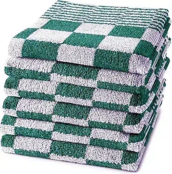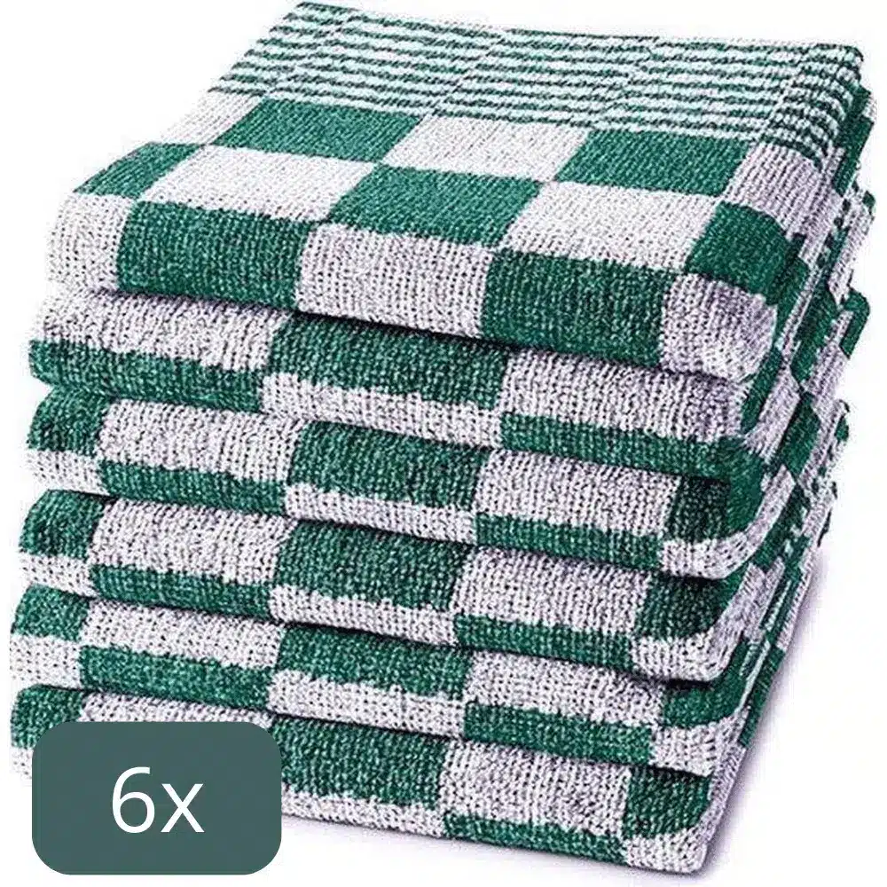 Droomtextiel keukendoeken in 100% katoen badstof 450g/m² bieden een perfecte pasvorm (50×50 cm), luxueuze zachtheid, superieure vochtopname en snelle droging. Verkrijgbaar in vier stijlvolle kleuren en verpakt per set van zes, vind je bij ons de duurzame keukendoek die net zo professioneel werkt als jij. Dankzij eenvoudig onderhoud en professionele kwaliteit geniet je elke dag van een frisse, schone keuken.