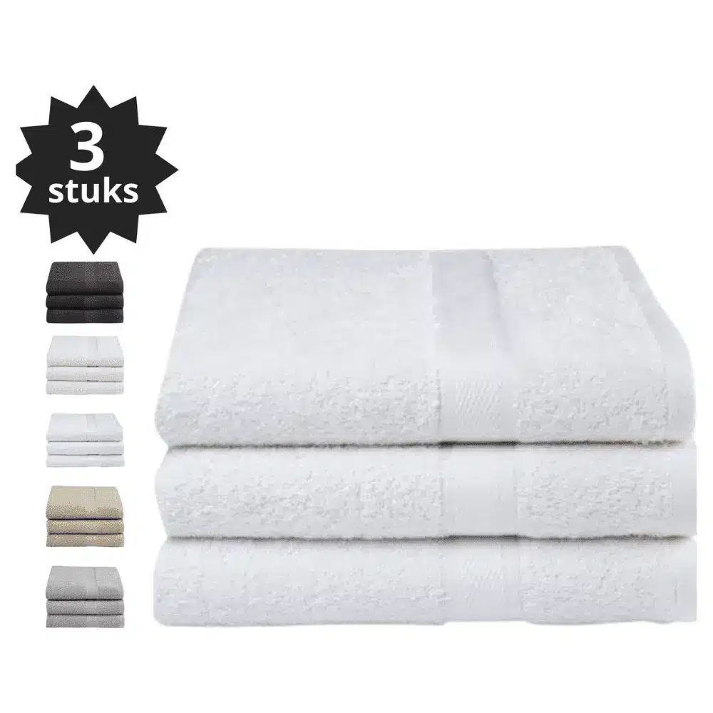 Wij adviseren per persoon minstens twee handdoeken in de was, aangevuld met een set reserve. Onze sets van drie bieden voldoende flexibiliteit.