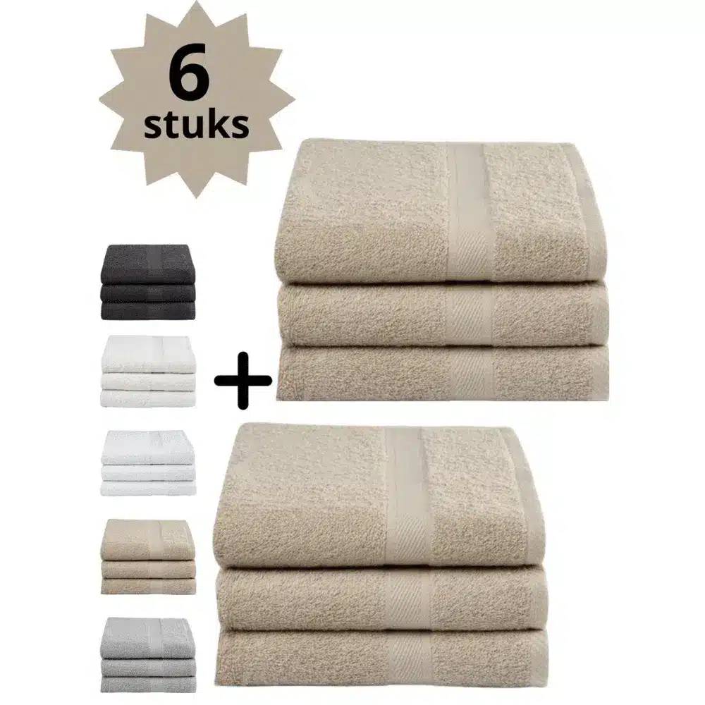 Kies de kleur die past bij jouw badkamer. Elke set bevat 6 handdoeken van 70×140 cm, klaar om al je gasten en gezinsleden in luxe te hullen.
