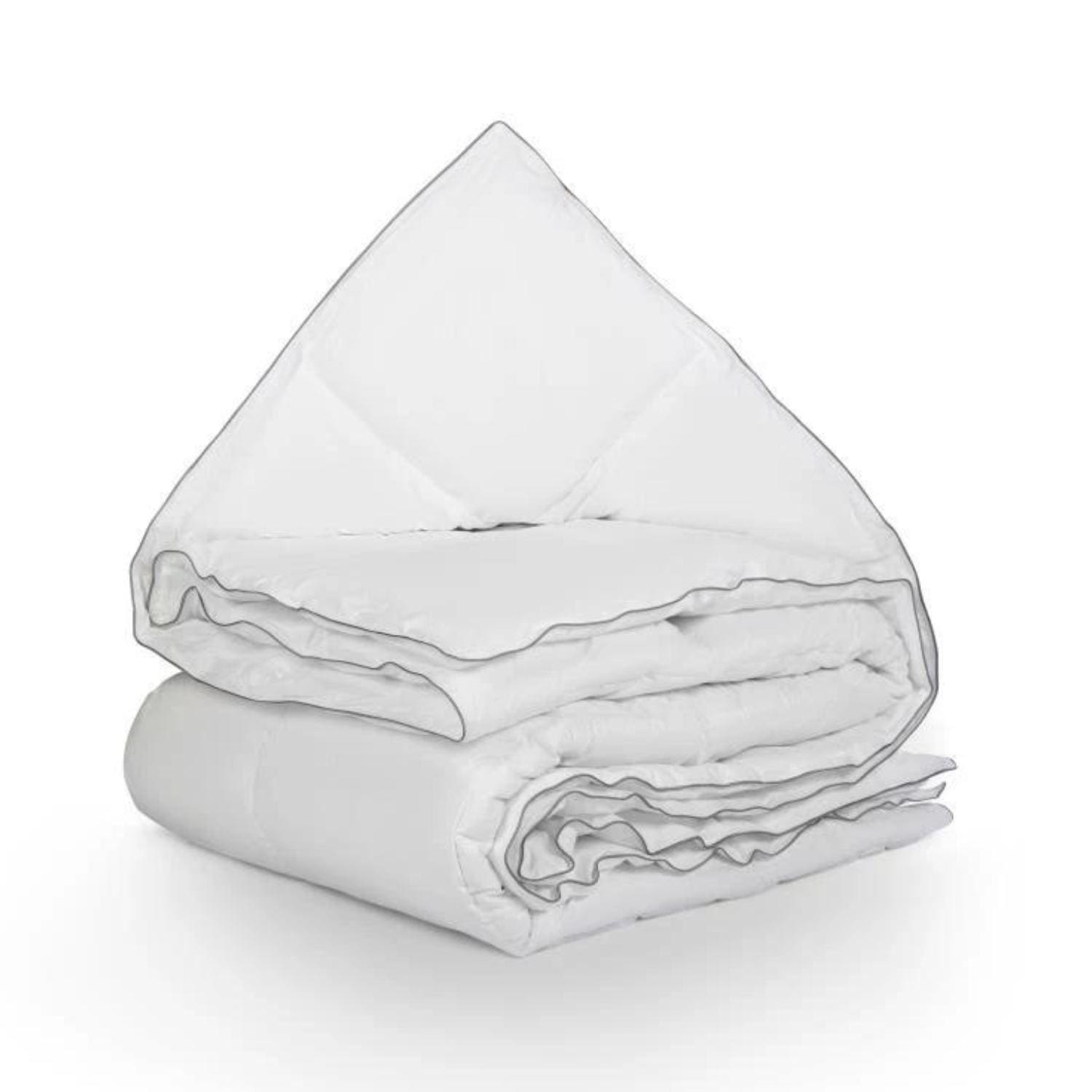 Dankzij de bijzondere structuur van percale katoen en de ecodown vulling geniet je jaarrond van de ideale temperatuur: