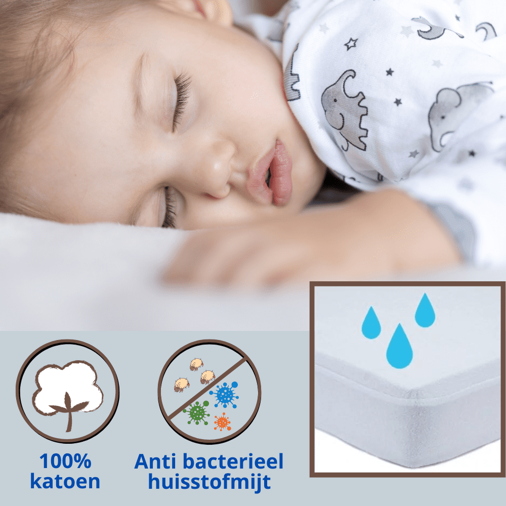 De combinatie van vochtabsorberende badstof en anti-huisstofmijt eigenschappen maakt deze matrasbeschermer ideaal voor mensen met allergieën. Je ademt ‘s nachts gemakkelijker, zonder benauwdheid of jeuk, en je verlengt de levensduur van je matras. Ook zweet, morsen van drinken of ongelukjes vormen geen probleem meer.