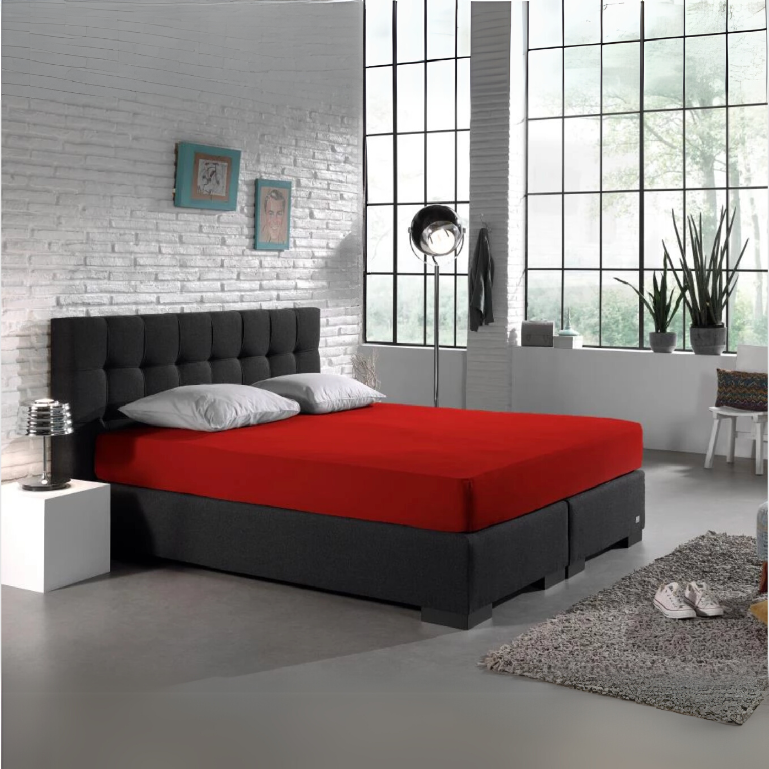 • Design: Zacht katoenen hoeslaken – kleur Rood, formaat 90×220 cm, hoge hoek