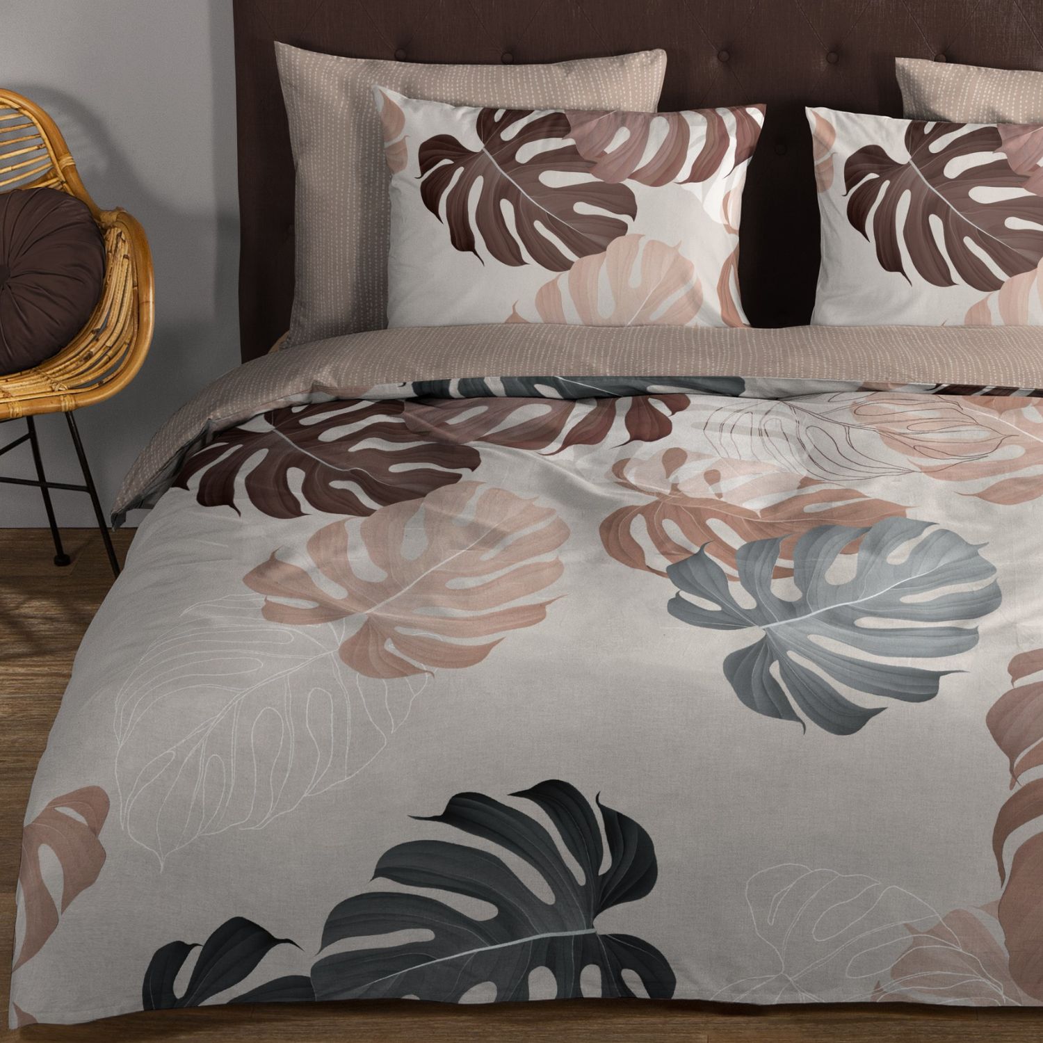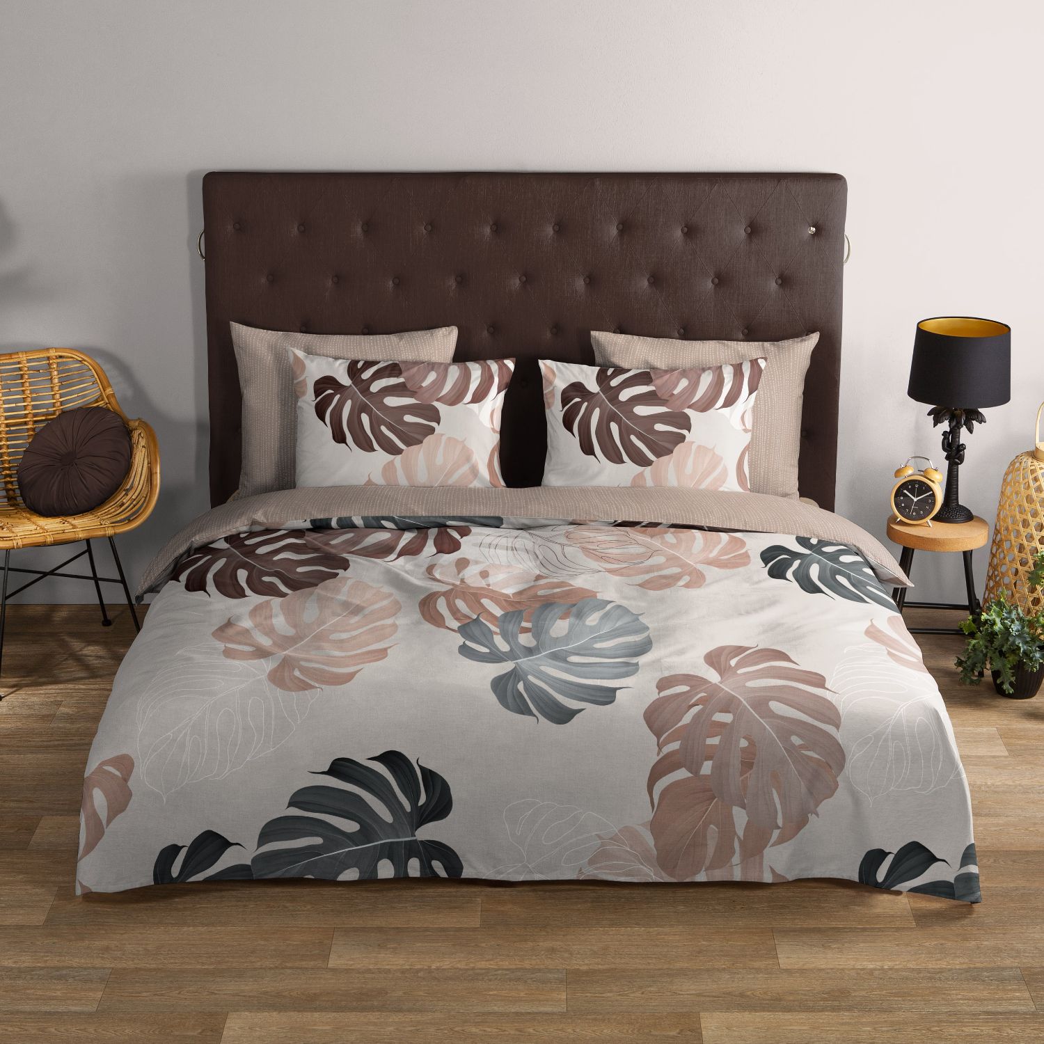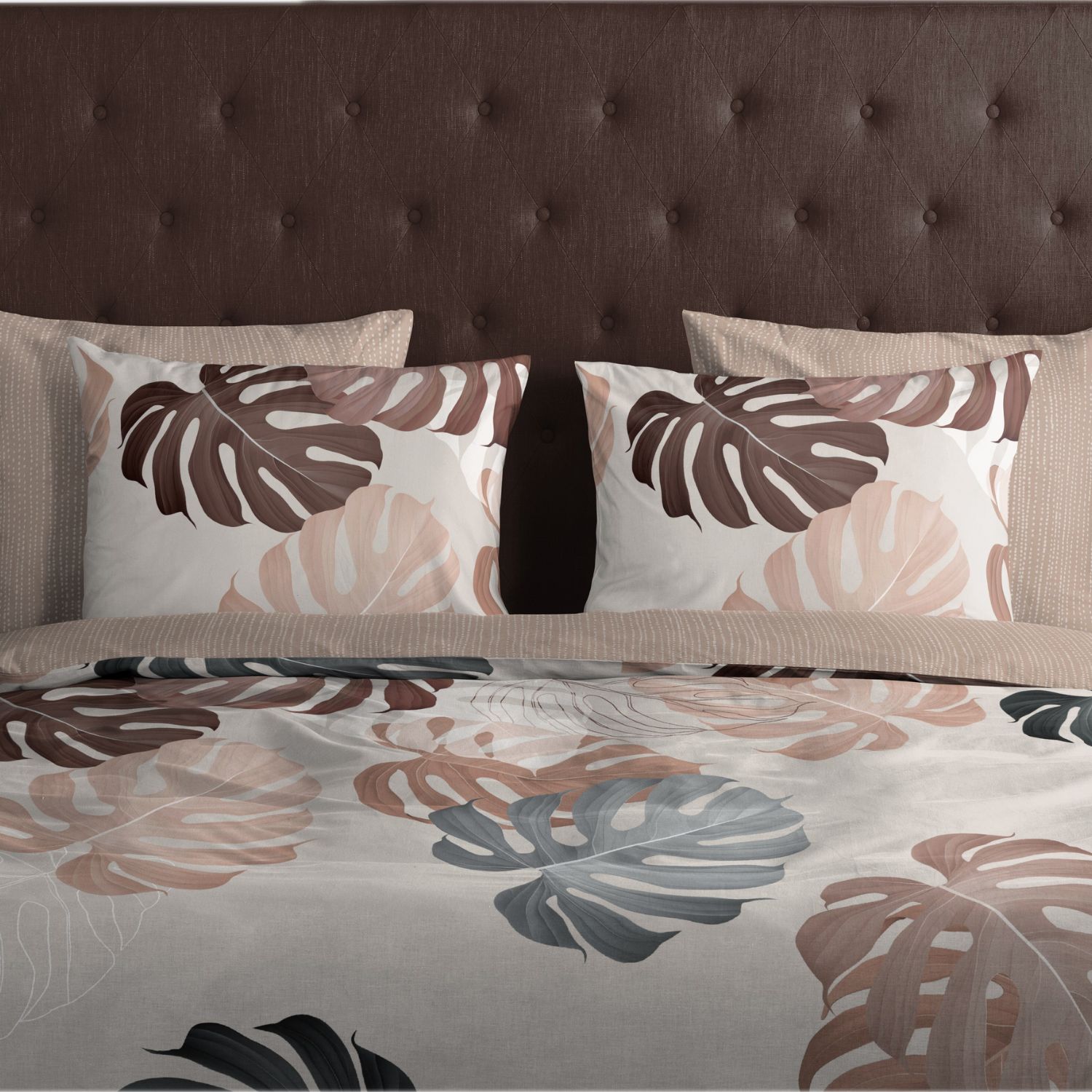 Breng rust en een natuurlijke sfeer in je slaapkamer met het Good Morning Cianna dekbedovertrek. Het overtrek is voorzien van een stijlvol dessin met grote bladeren van de gatenplant in een warme zandkleur. Dit botanische ontwerp zorgt voor een moderne en serene uitstraling en laat zich moeiteloos combineren met diverse interieurstijlen, van modern tot natuurlijk.