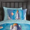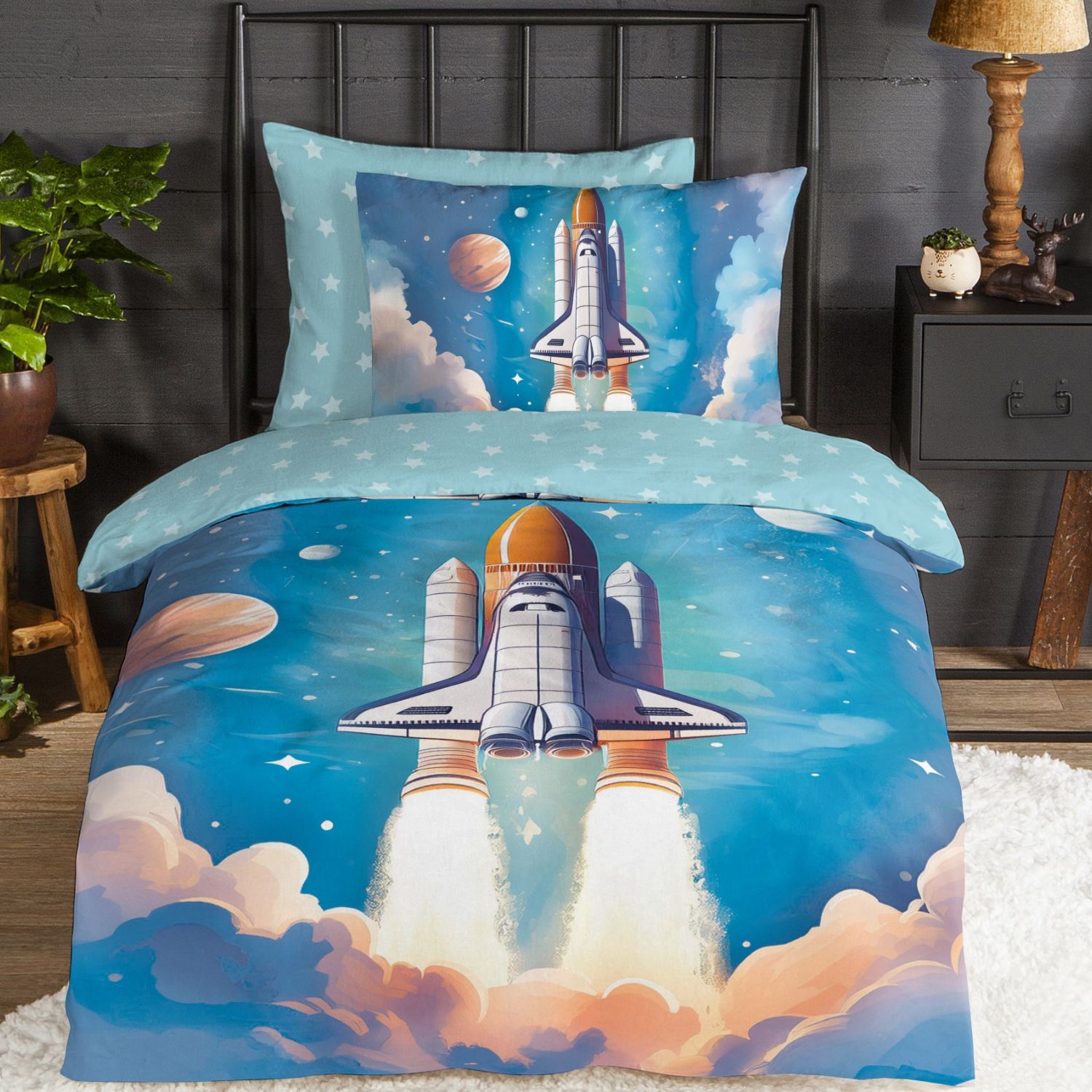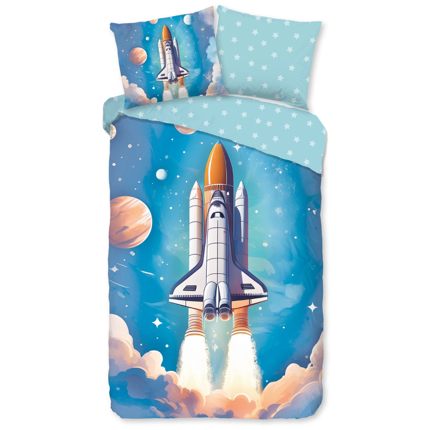 Het Good Morning Fred kinderdekbedovertrek in de kleur blauw heeft een stoere print van een raketlancering. Gemaakt van 100% katoen/flanel, een licht geruwde stof die een fluweelzacht laagje vormt. Dit voelt heerlijk warm aan en is daardoor perfect voor koude nachten. De ademende en vochtabsorberende kwaliteit zorgt voor een comfortabel slaapklimaat.
