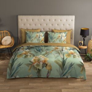 Het Good Morning Iris dekbedovertrek is voorzien van prachtig aquarelgetekende bloemen in de kleur groen. Het dessin brengt een frisse en rustgevende sfeer in de slaapkamer. Gemaakt van 100% katoen, is dit dekbedovertrek ademend, vochtabsorberend en voelt het heerlijk zacht en soepel aan. Het materiaal biedt comfort in elk seizoen: koel in de zomer en warm in de winter.