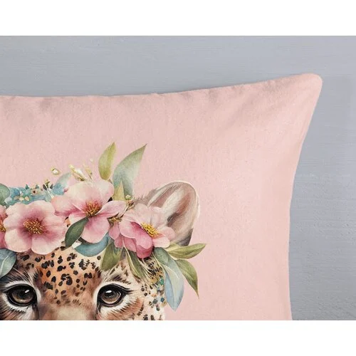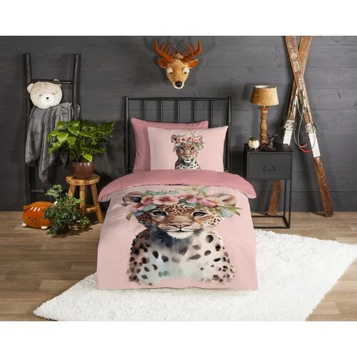 Het roze dessin met panter en jungle bloemen geeft de kamer een speelse en stoere uitstraling. Het overtrek is voorzien van een dubbel doorlopende instopstrook en wordt geleverd met een bijpassende kussensloop. Dankzij de Oeko-Tex certificering is het veilig en huidvriendelijk.
