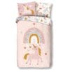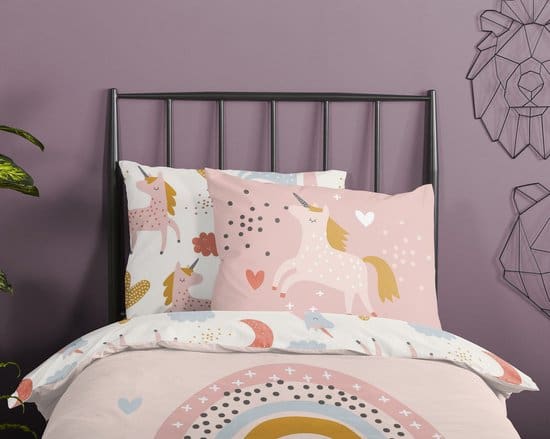 • Merk: Good Morning • Design: Unilove (eenhoorn en regenboog, kleur Multi) • Materiaal: 100% katoen – ademend, vochtabsorberend, zacht en soepel • Seizoensgeschikt: koel in de zomer, warm in de winter • Afmetingen: dekbedovertrek 140×200/220 cm, kussensloop 60×70 cm • Instopstrook: dubbele doorlopende instopstrook van 20 cm • Wasadvies: wassen tot max. 40 °C, geschikt voor de wasdroger • Certificering: Oeko‑Tex Standard 100 (vrij van schadelijke stoffen, huidvriendelijk)