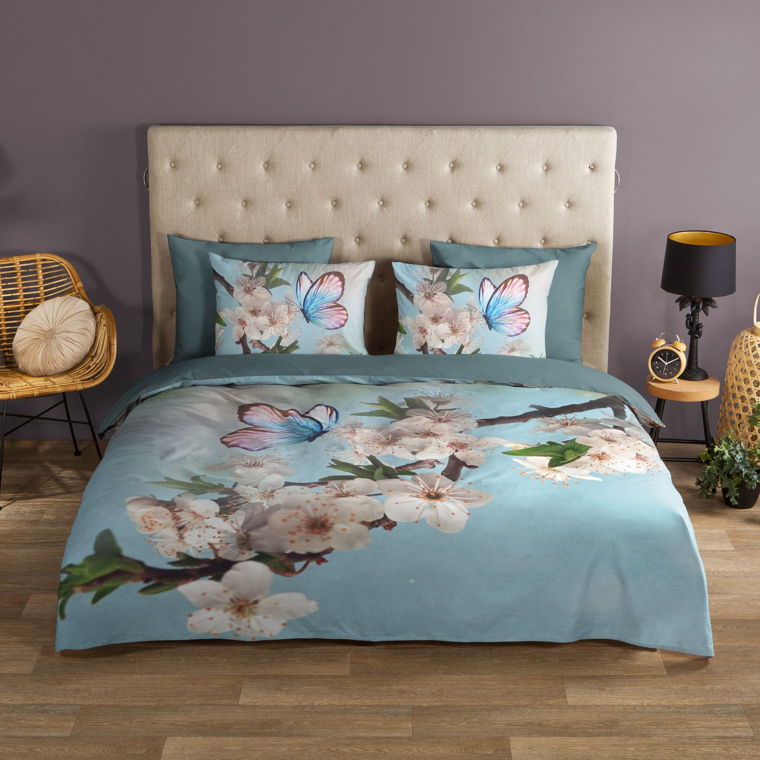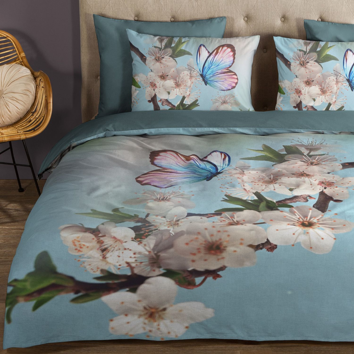 Het Good Morning Mayla dekbedovertrek in aqua brengt een frisse en romantische sfeer in je slaapkamer dankzij het bloemen- en vlinderdessin. Gemaakt van 100% katoen voelt het heerlijk zacht, ademend en comfortabel aan in elk seizoen. Inclusief bijpassende kussenslopen voor een complete en verzorgde look.