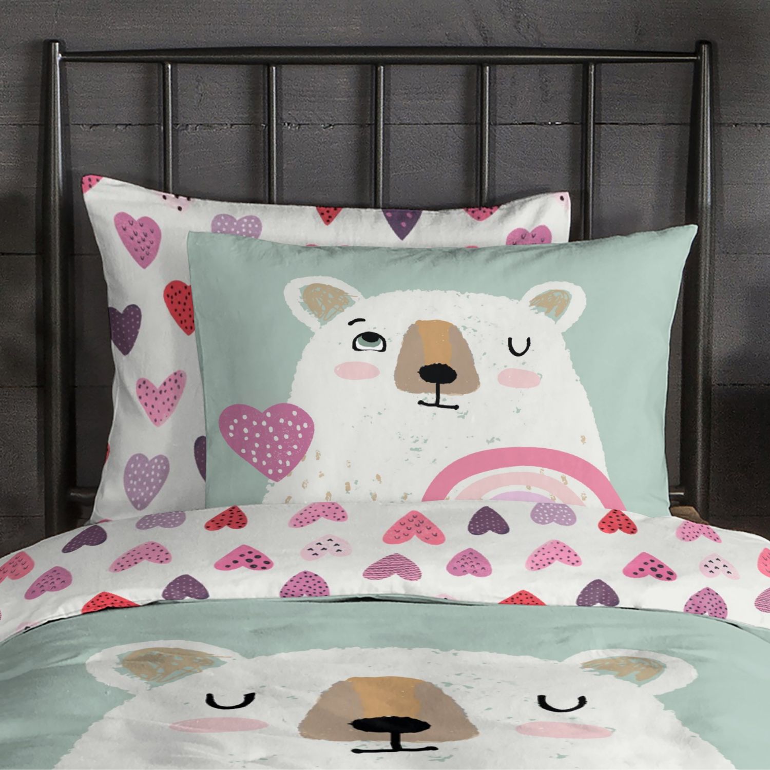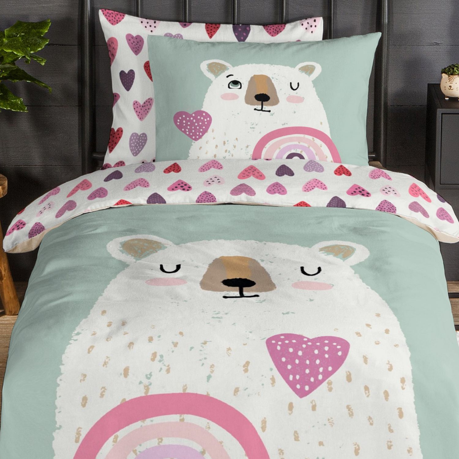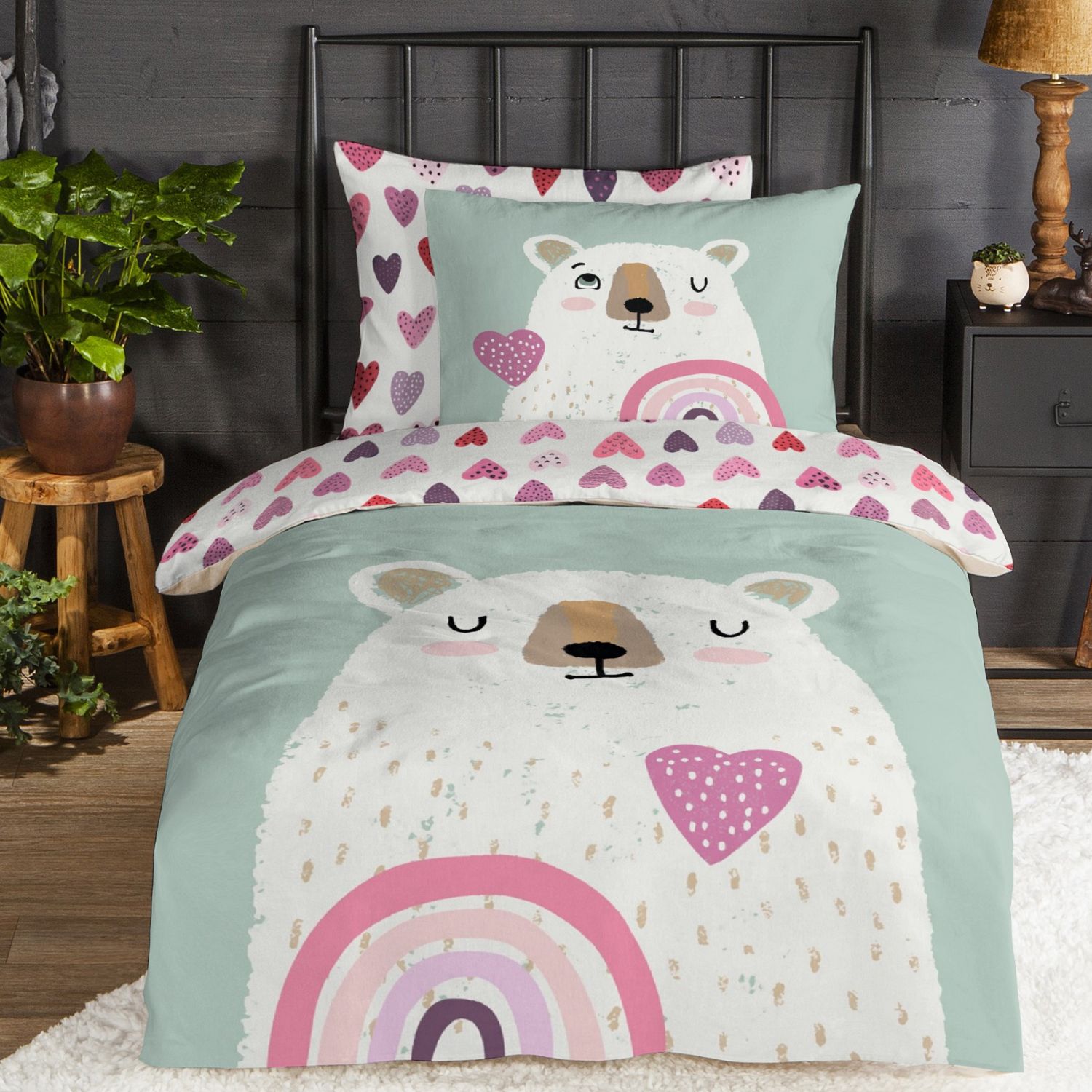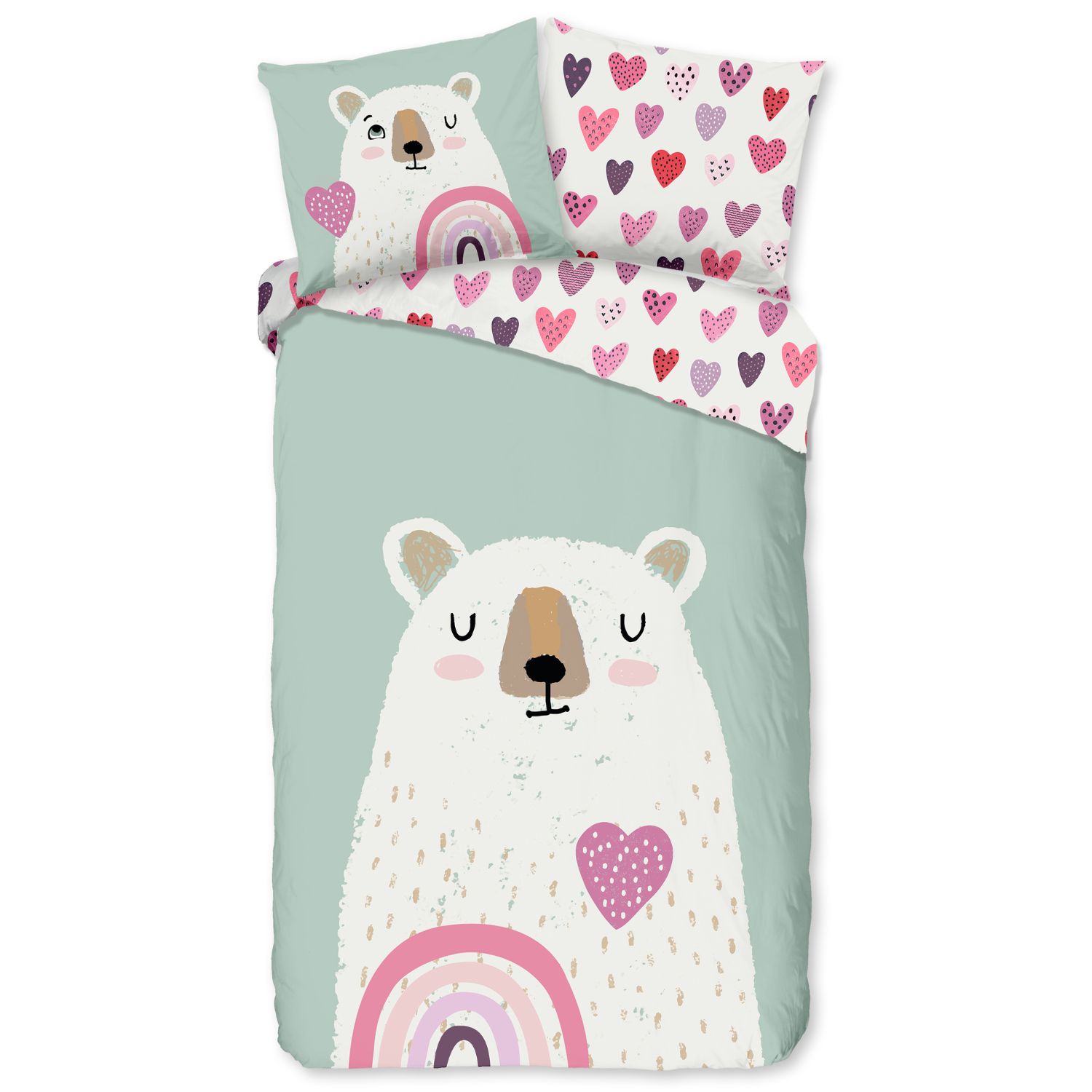 Maak de kinderkamer extra gezellig met het Good Morning Ted flanellen kinderdekbedovertrek. De lieve print van een beer met een hart en regenboog zorgt voor een warme en vrolijke uitstraling – perfect voor knusse winternachten.