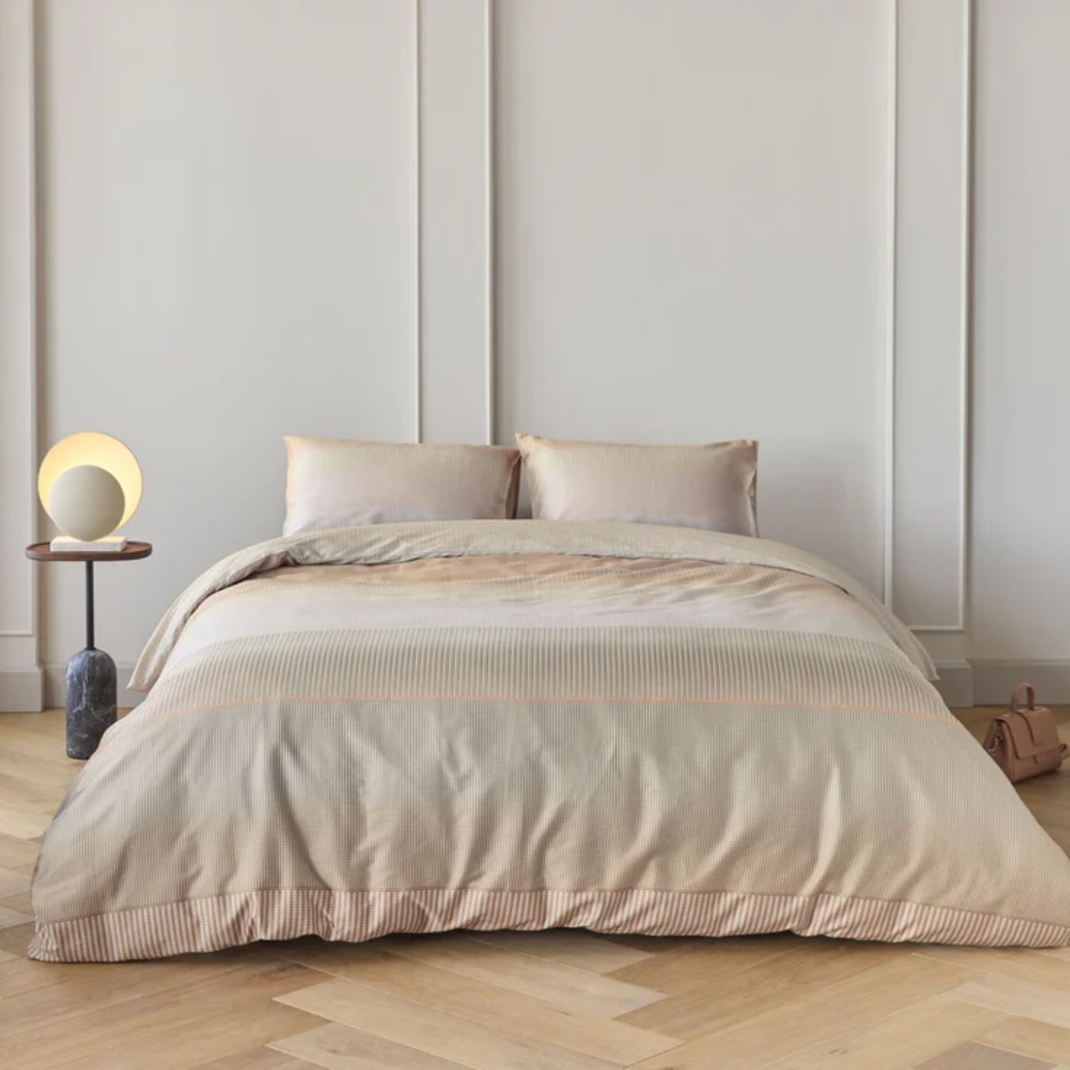 Kardol Abstract Dekbedovertrek Terra Breng warmte en stijl in je slaapkamer met het Kardol Abstract dekbedovertrek in terra. Het verfijnde banenpatroon en de subtiele grafische structuur geven het overtrek een moderne uitstraling, terwijl de warme terra tint zorgt voor een gezellige en luxe sfeer. Dankzij de effen achterzijde maak je eenvoudig een chique omslag en wissel je makkelijk van look.
