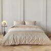 Het dekbedovertrek is gemaakt van 100% katoensatijn (220 TC). Door de satijnbinding voelt de stof extra zacht en soepel aan en heeft het een luxe glans. Daarnaast is katoensatijn goed ademend en vochtabsorberend, zodat je elke nacht comfortabel slaapt en fris wakker wordt. De dubbel doorlopende instopstrook met extra lengte maakt het overtrek praktisch en geschikt voor langere dekbedden.