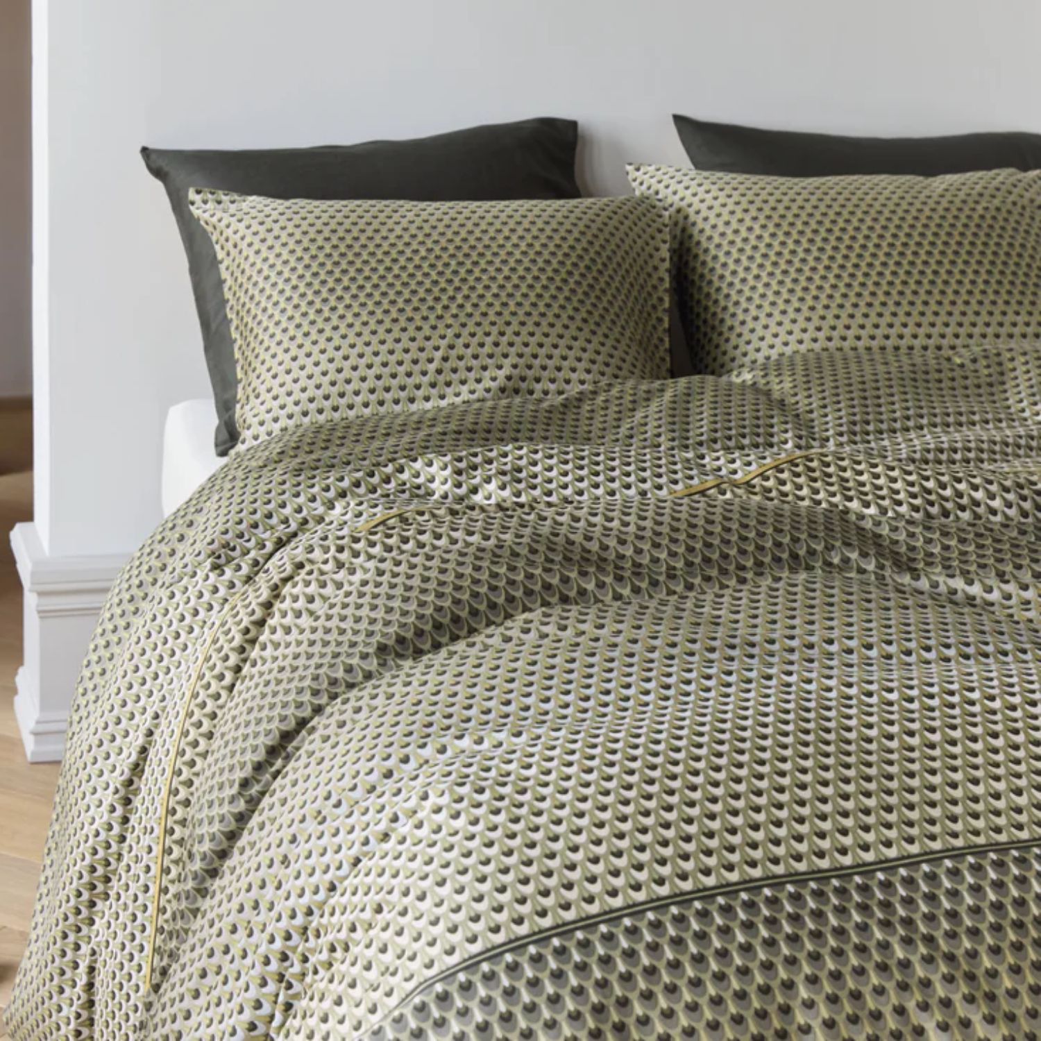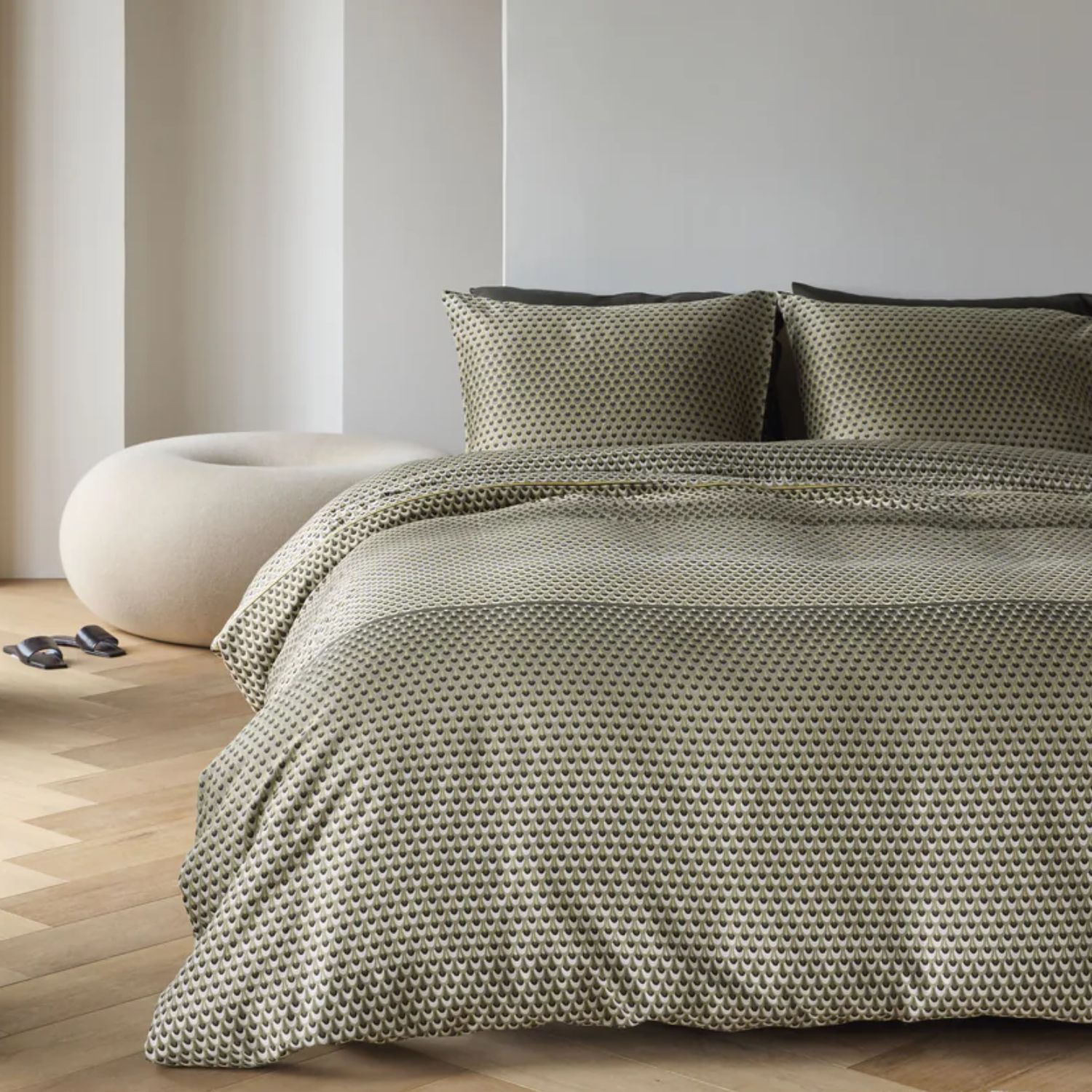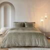 Het Kardol Lofty dekbedovertrek in olijfgroen brengt een stijlvolle en moderne rust in de slaapkamer. Het verfijnde geometrische dessin met gelaagde lijnen en zachte kleurovergangen geeft het bed een luxe uitstraling zonder overheersend te zijn. Ideaal voor wie houdt van een serene, elegante basis met subtiele diepte.
