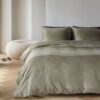 Het dekbedovertrek is vervaardigd van 100% katoen-satijn met een draaddichtheid van 220 TC. Deze hoogwaardige kwaliteit voelt soepel, glad en zijdezacht aan en heeft een subtiele glans. Dankzij de ademende en vochtregulerende eigenschappen biedt het overtrek een comfortabel slaapklimaat in elk seizoen.