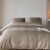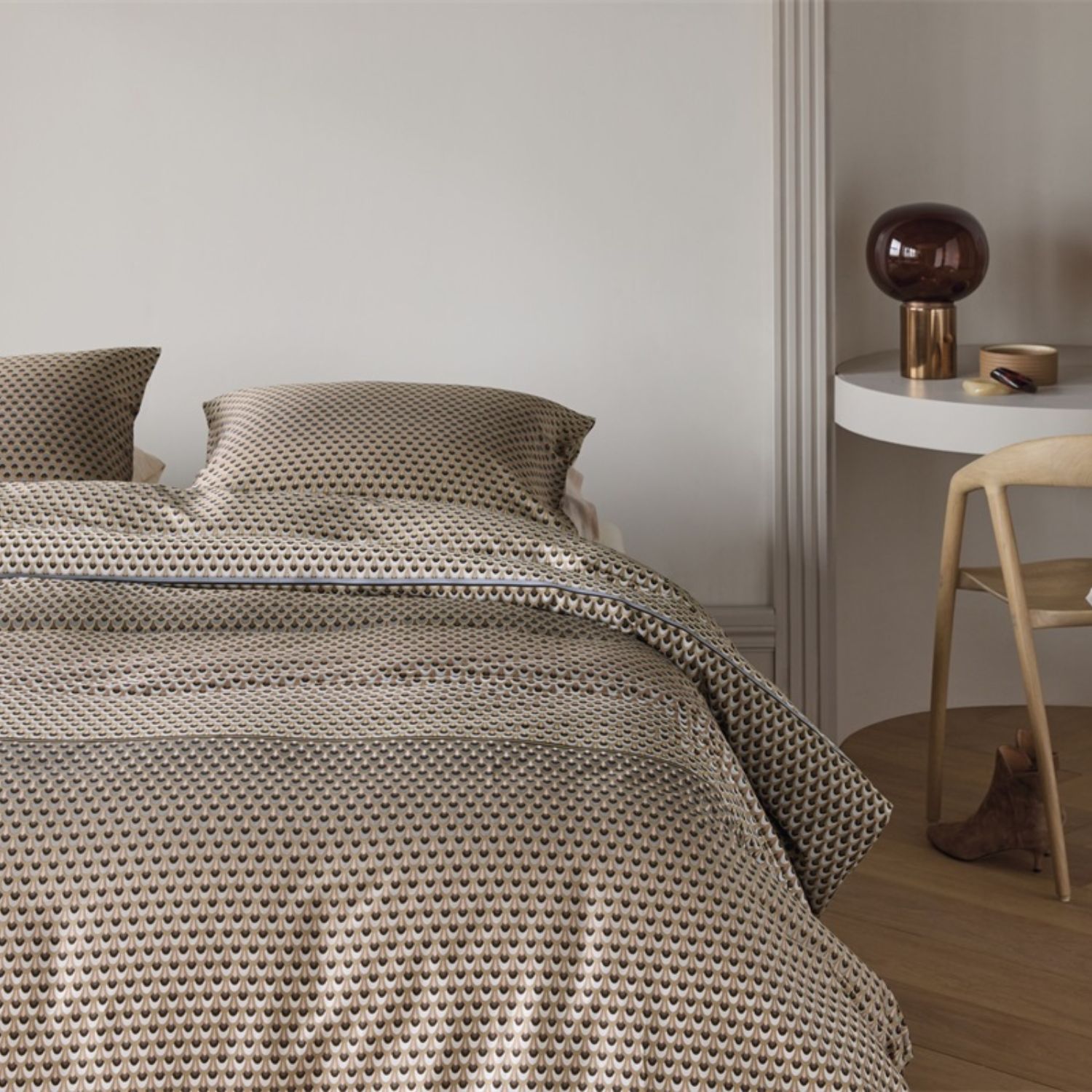 Het dekbedovertrek is vervaardigd van hoogwaardig 100% katoen-satijn met een draaddichtheid van 220 TC. Deze kwaliteit voelt soepel, glad en zijdezacht aan en heeft een subtiele glans. Dankzij de ademende en vochtregulerende eigenschappen zorgt het overtrek voor een comfortabel slaapklimaat in elk seizoen.