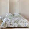 Het Kardol Pastiche dekbedovertrek is een luxe dubbelzijdig ontwerp dat je slaapkamer een verfijnde en stijlvolle uitstraling geeft. De voorzijde toont een rijke botanische print met takken en bloemen, terwijl de achterzijde is voorzien van een subtiel, verfijnd motief dat mooi aansluit op het bloemrijke dessin. Dankzij de lichte champagnekleurige basis, gecombineerd met vergrijsd groen en subtiel geel, creëert dit overtrek een frisse en elegante sfeer. De effen baan aan de bovenzijde zorgt voor een rustige afwerking – ideaal in combinatie met een gekleurd hoofdbord.
