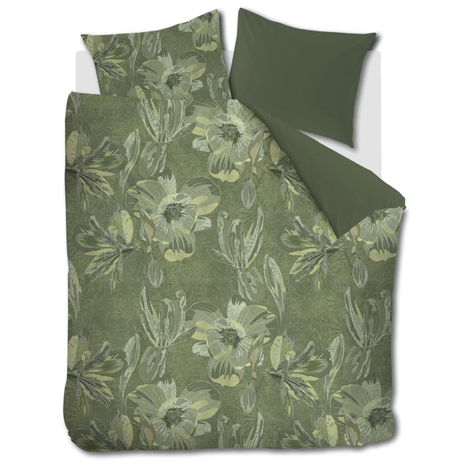 Haal de rust van de natuur in huis met het Kardol Symbiose dekbedovertrek. Dit verfijnde ontwerp toont een kunstzinnige bloemenprint die lijkt te zijn geschilderd op de stof. Door de combinatie van subtiele bloemdetails en grotere botanische motieven ontstaat een gelaagd en dieptevol effect. De harmonieuze groentinten brengen een kalme, natuurlijke sfeer in de slaapkamer. De effen groene achterzijde zorgt voor een luxe omslag en geeft het geheel een elegante afwerking. Het dekbedovertrek is gemaakt van 100% katoen-satijn, een hoogwaardige stof met een prachtige glans en een zijdezachte touch. Dankzij de ademende en vochtabsorberende eigenschappen geniet je elke nacht van een fris en comfortabel gevoel. De dubbel doorlopende instopstrook met extra lengte maakt het overtrek geschikt voor alle dekbedlengtes tot circa 260 cm en houdt het netjes op zijn plaats. Kardol by Beddinghouse staat bekend om zijn stijlvolle ontwerpen en uitmuntende kwaliteit. Elk seizoen brengt het merk een exclusieve collectie die elegantie, comfort en moderne kunstzinnigheid samenbrengt.