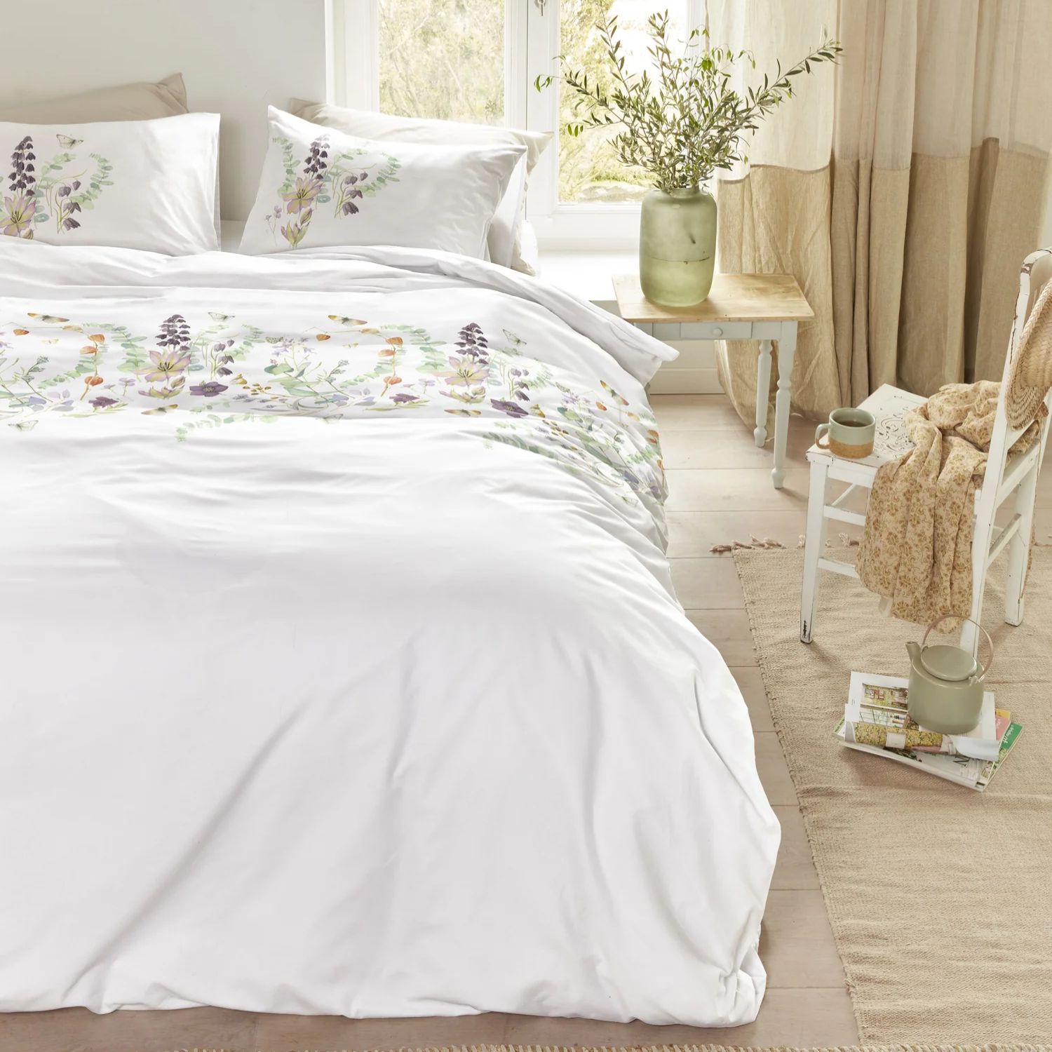 Geef jouw slaapkamer een frisse en natuurlijke uitstraling met het Marjolein Bastin Fritillaria dekbedovertrek. Het witte dessin is verrijkt met een horizontale baan vol fijne blaadjes en bloemetjes in zachte, natuurlijke tinten. De subtiele kleuren en verfijnde details zorgen voor een rustige, harmonieuze sfeer waarin je iedere avond ontspannen in slaap valt. Ook de bijpassende kussenslopen zijn voorzien van het sierlijke bloemendessin voor een compleet geheel.