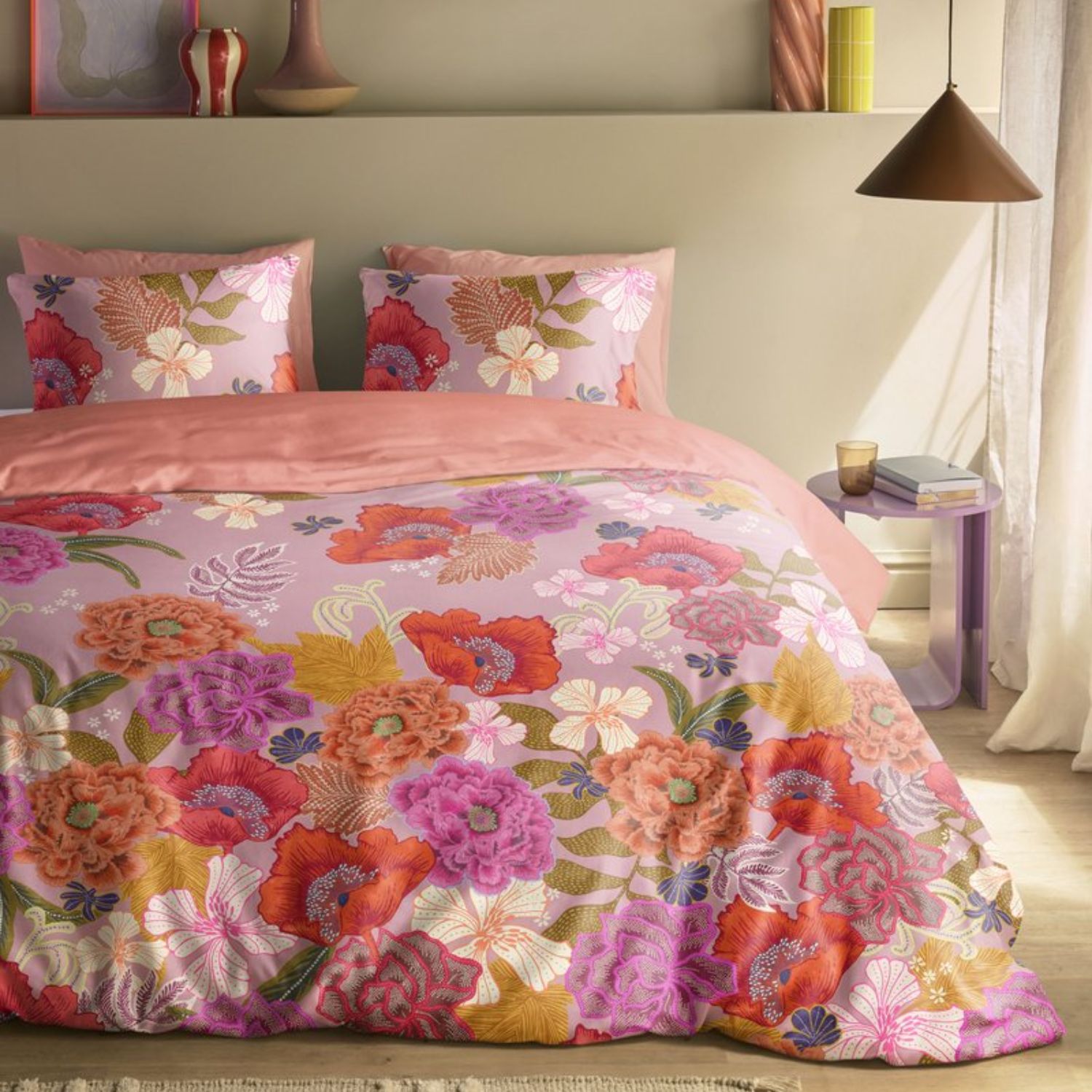 Dekbedovertrek Elyza heeft een sierlijk bloemenpatroon dat zorgt voor een levendig en elegant effect. De zachte kleuren creëren een natuurlijke en uitnodigende sfeer die perfect past binnen een modern interieur met botanische invloeden. Het ontwerp geeft de slaapkamer op subtiele wijze meer kleur en karakter.