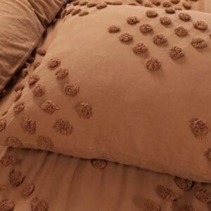 Het witte dekbedovertrek is subtiel verrijkt met een patroon van pompom bolletjes aan de voorzijde. Dat geeft een speels en lieflijk effect, perfect voor een landelijke of boho slaapkamer. Dezelfde bolletjes vind je terug op de kussenslopen, waardoor jouw bed styling tot in detail klopt.