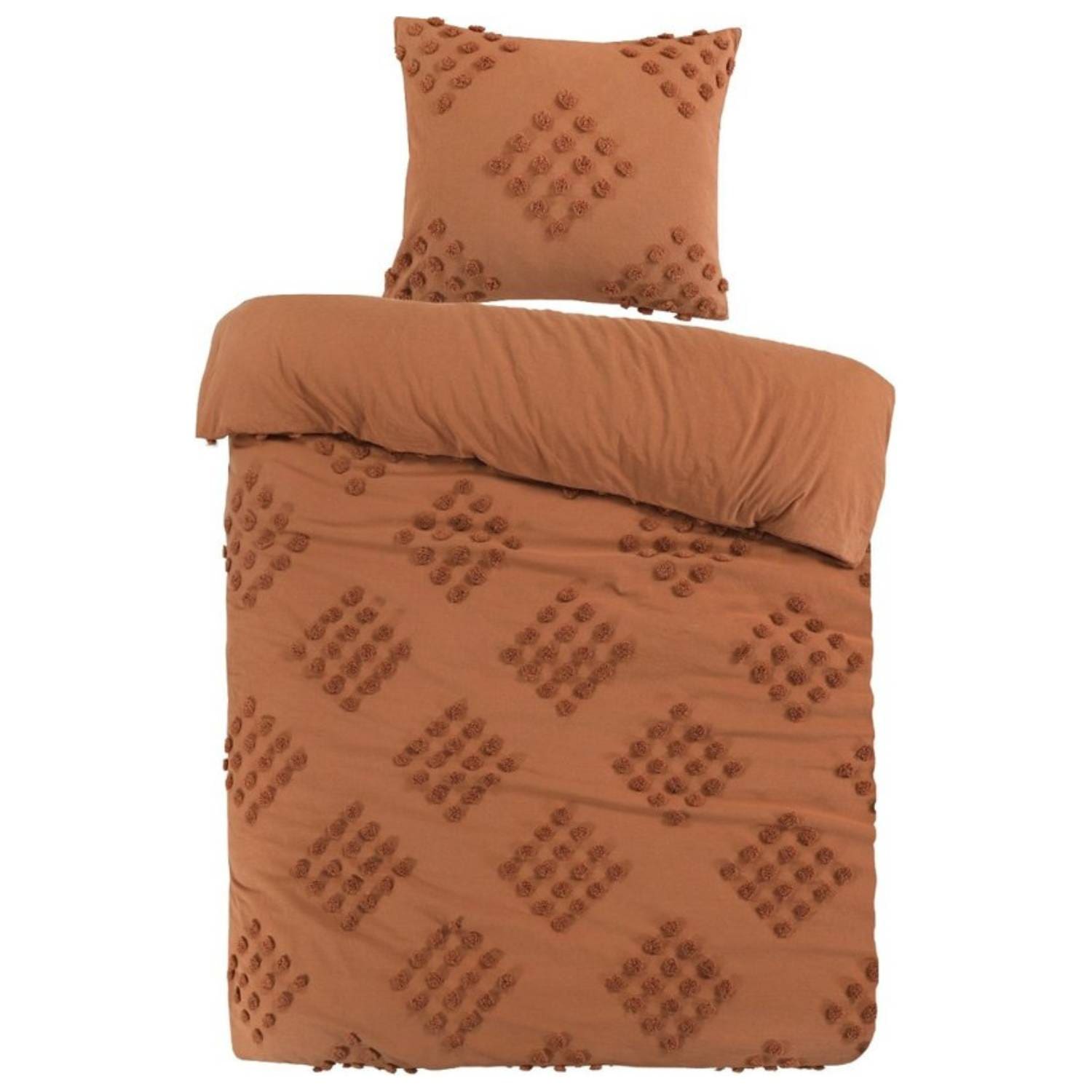 - Romantisch pompom dessin op de voorzijde, effen achterkant voor serene rust.