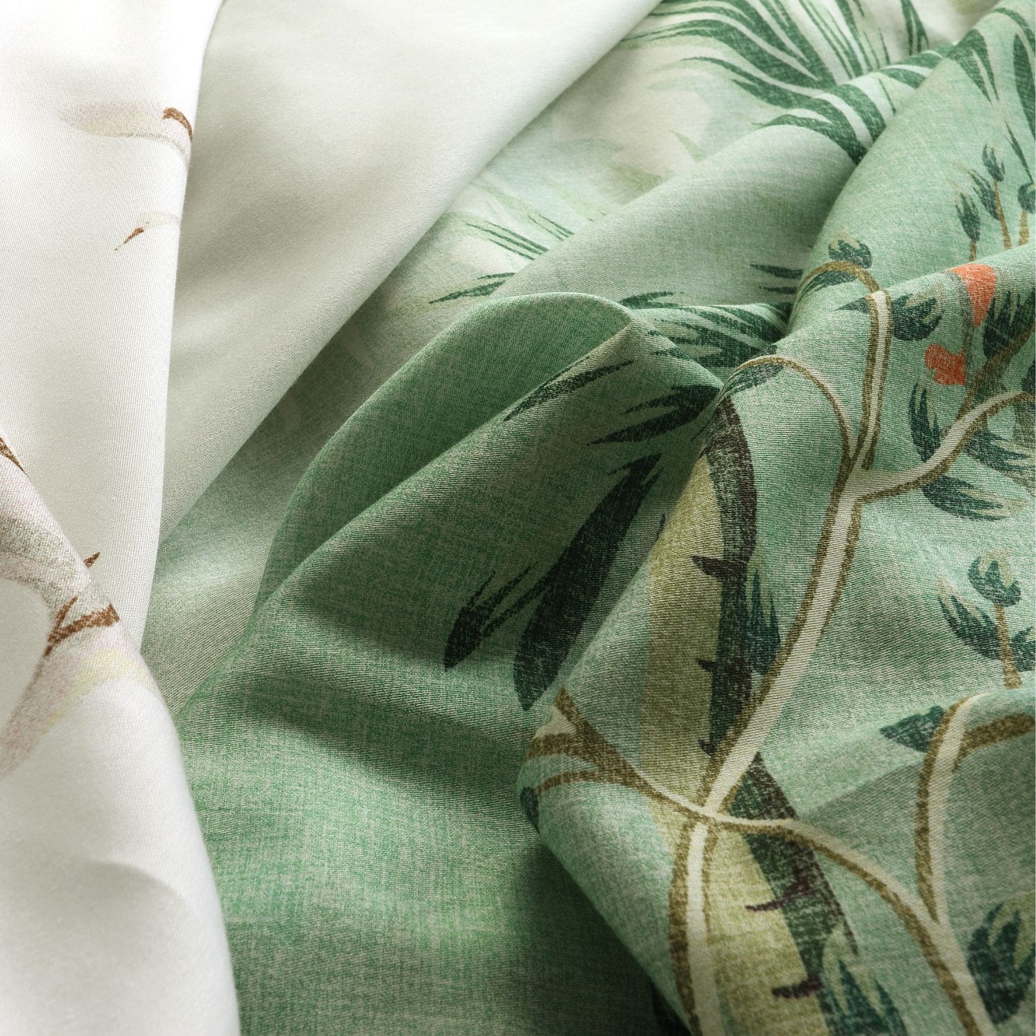 Stel je voor: je komt thuis na een lange dag, je trekt je favoriete pyjama aan (of misschien lig je gewoon in je comfy loungebroek), je hebt een zacht hoeslaken katoen satijn om je matras gespreid, en je dekbedovertrek Jungle ligt uitnodigend op je bed. De eerste aanraking met de glansrijke, zachte stof geeft je direct een gevoel van ontspanning en luxe. Je legt je hoofd op een bijpassend kussensloop en sluit je ogen terwijl de botanische print je meeneemt naar een tropisch regenwoud vol rust en sereniteit.