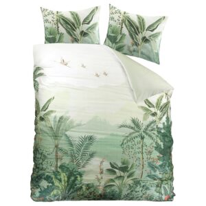 Het Dekbedovertrek Jungle van Droomtextiel combineert een prachtige botanische print met de luxe en kwaliteit van 100% katoen-satijn. Dankzij de dubbele instopstrook heb je altijd een perfecte pasvorm, zelfs op extra lange dekbedden en boxsprings. De ademende, absorberende en duurzame stof biedt je het hele jaar door comfort. Met bijpassende hoeslakens en accessoires in hotelkwaliteit maak je je slaapkamer compleet.
