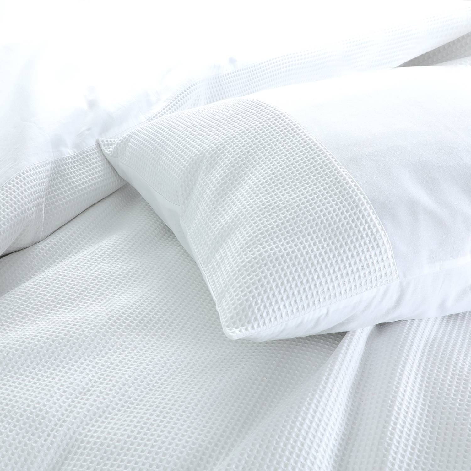 De Papillon Mendoza kussenslopen delen dezelfde wafel- en gladde structuur als het dekbedovertrek. Zo houd je je stijl één geheel.
