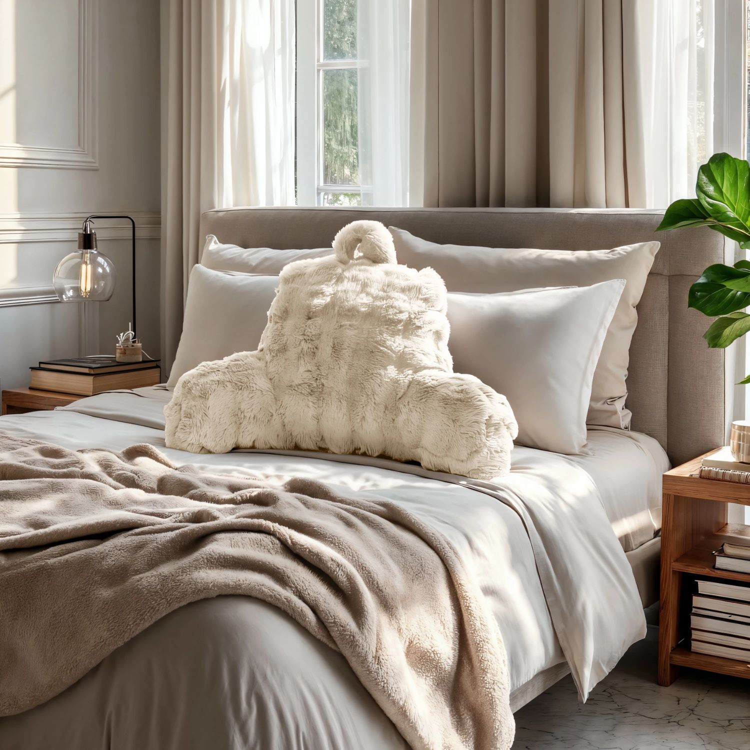 Bedrest Pompom 34 x 50 van Primaviera Deluxe biedt luxe comfort en stevige ondersteuning dankzij de ultrazachte faux fur stof van 500 gsm. Met zijn volle vulling en stevige vorm is dit rugkussen perfect om comfortabel tegenaan te leunen tijdens lezen, tv-kijken of ontspannen. Warm, stijlvol en onderhoudsvriendelijk – een echte eyecatcher voor bed of bank.