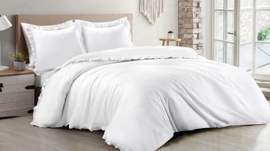 Geef je slaapkamer een elegante en sfeervolle uitstraling met dit luxe dekbedovertrek met roesjes. De subtiele details en tijdloze stijl maken dit overtrek eenvoudig te combineren met verschillende interieurstijlen. Gemaakt van 100% zacht katoen, voelt het heerlijk comfortabel aan en zorgt het voor een fijne, rustgevende nachtrust.