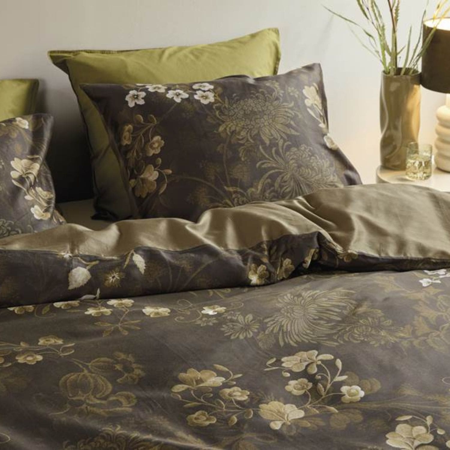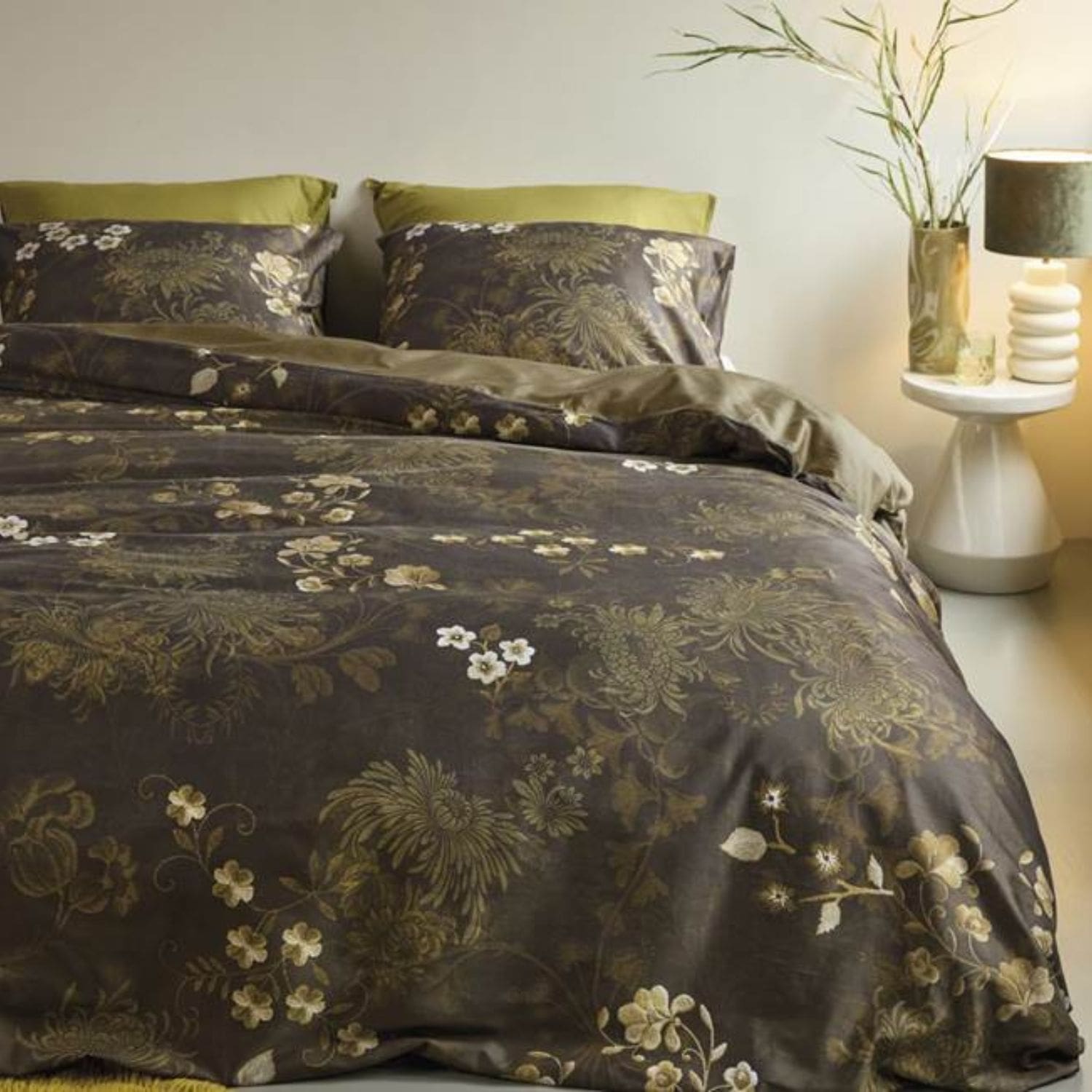 Geef jouw slaapkamer een stijlvolle en klassieke uitstraling met het Beddinghouse Darcy dekbedovertrek. De print bestaat uit een rijke bloemencompositie in warme groen- en bruintinten. Witte bloemetjes en subtiele gouden accenten springen direct in het oog en zorgen voor een luxe effect. Doordat de bloemen deels overlappen en gebruik is gemaakt van heldere én vervaagde tinten, ontstaat er een prachtige diepte in het ontwerp. De effen groene achterzijde biedt een rustgevend contrast en maakt het mogelijk om een luxueuze omslag te creëren.