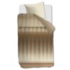 Val iedere avond heerlijk ontspannen in slaap onder het Beddinghouse Jenn dekbedovertrek. Het overtrek bevat een strakke banenprint in rustgevende aardetinten. Het kleurverloop waarvan gebruik wordt gemaakt, laat de print nog harmonieuzer ogen. Het trendy kleurpalet en de moderne print worden gecombineerd met subtiele grafische details. Hierdoor krijgt het dessin een speelse toevoeging. De achterzijde is effen van kleur, zodat je een luxe omslag kunt creëren.